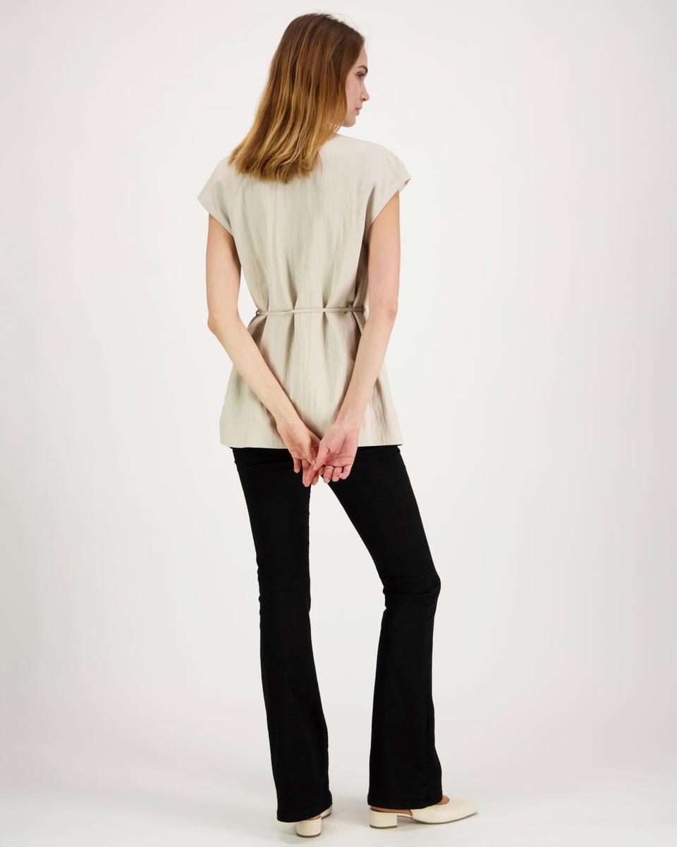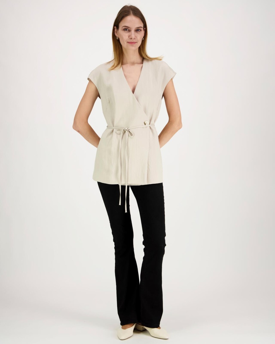 Naisten tyylikäs Nizza-liivi. Yksivärisessä kietaisutyylisessä liivissä on V-pääntie, nappikiinitys sekä vyötäröllä vyö. Liivin pituus koossa M on noin 77 cm. Päällimateriaali on Lyocell-sekoitetta. Liivissä on ohut vuori.