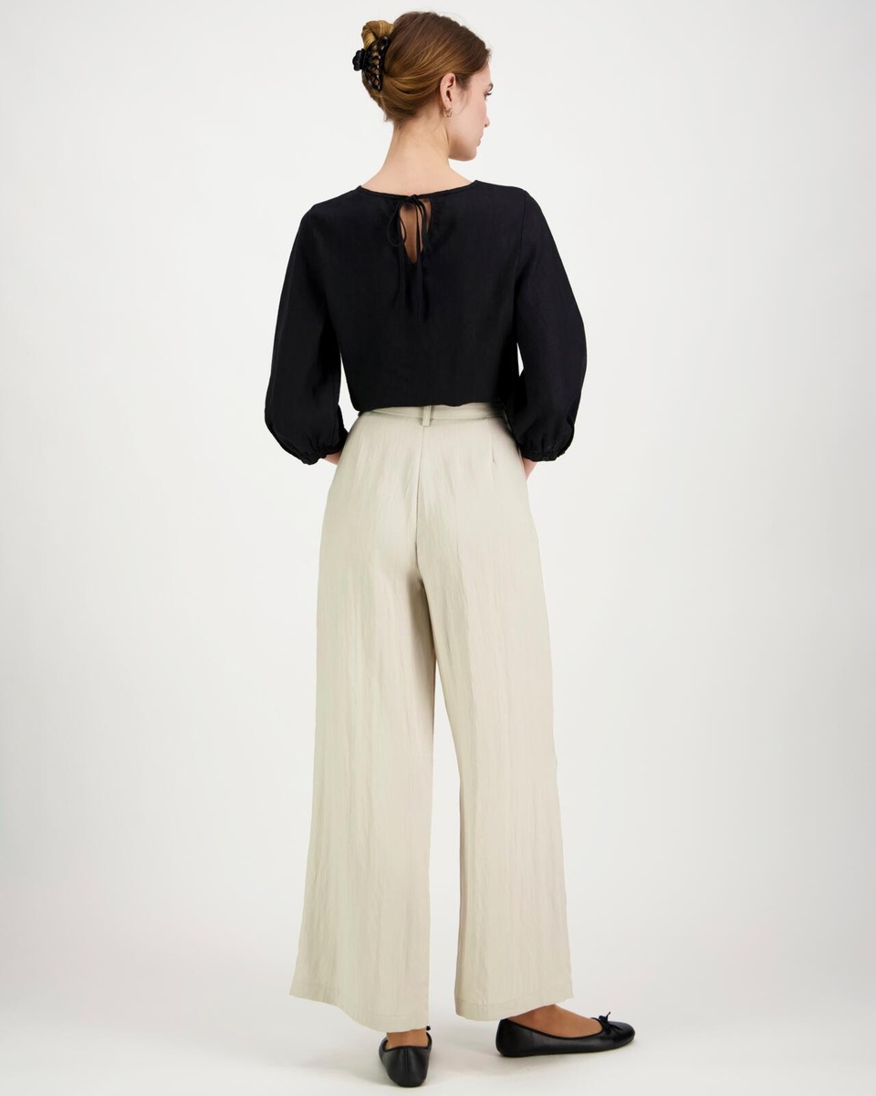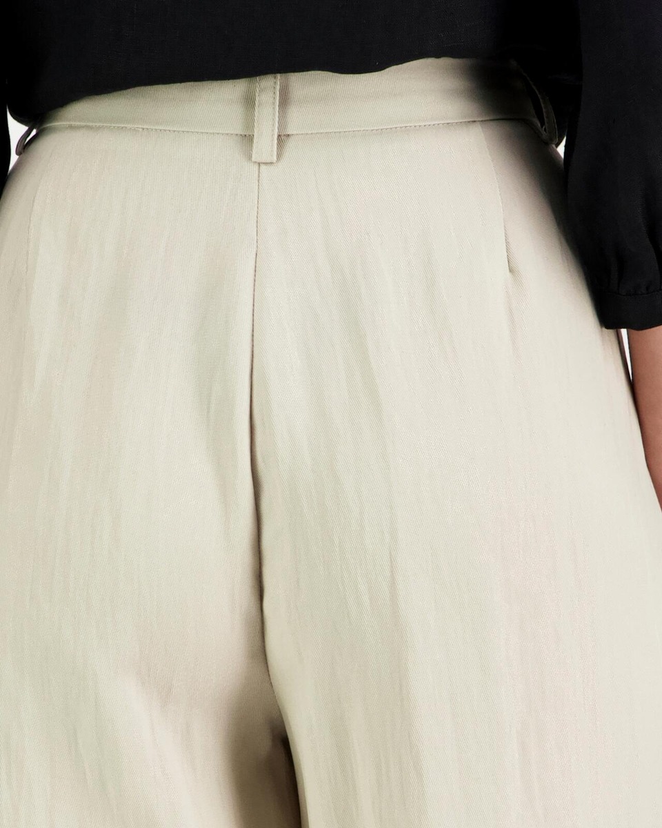 Naisten yksiväriset Nizza-housut. Housuissa on istuva vyötärö, muotolaskokset ja sivuissa taskut.Täyspitkissä housuissa on hieman levenevät lahkeet. Housujen lahkeen sisäpituus koossa 38 on noin 78 cm. Materiaali on kudottua Lyocell-sekoitekangasta.