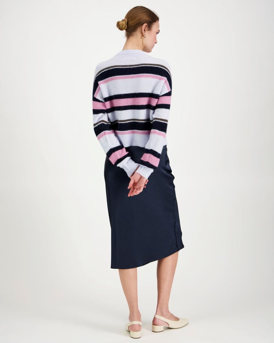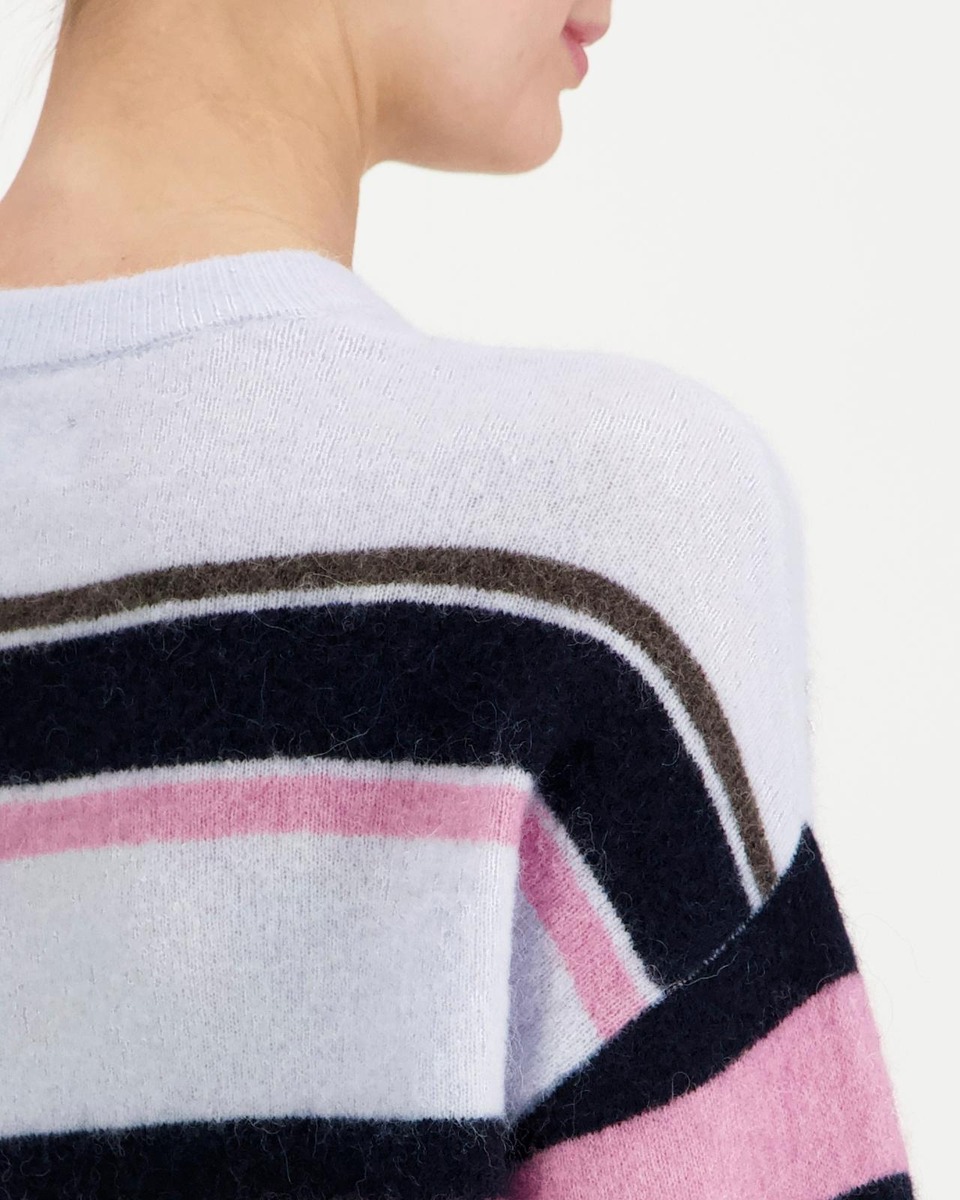 Samsøe Samsøen klassinen villa-alpakkasekoitteesta valmistettu neule yhdistää ylellisyyden ja käytännöllisyyden. Pudotetut hartiat, pyöreä pääntie ja tyylikkäät raidat luovat paidalle trendikkään ilmeen. Täydellinen valinta viileisiin päiviin ja helppo yhistää housujen tai hameen kanssa.