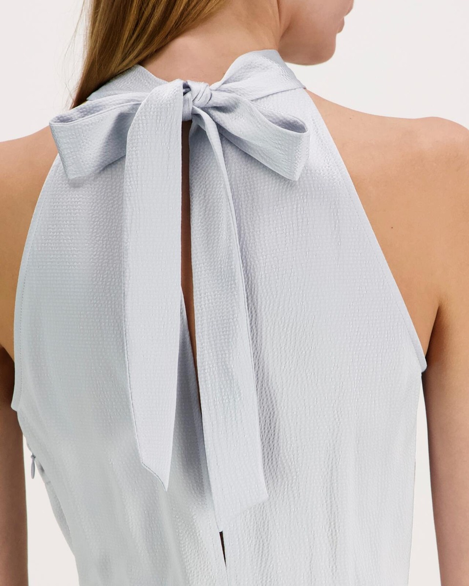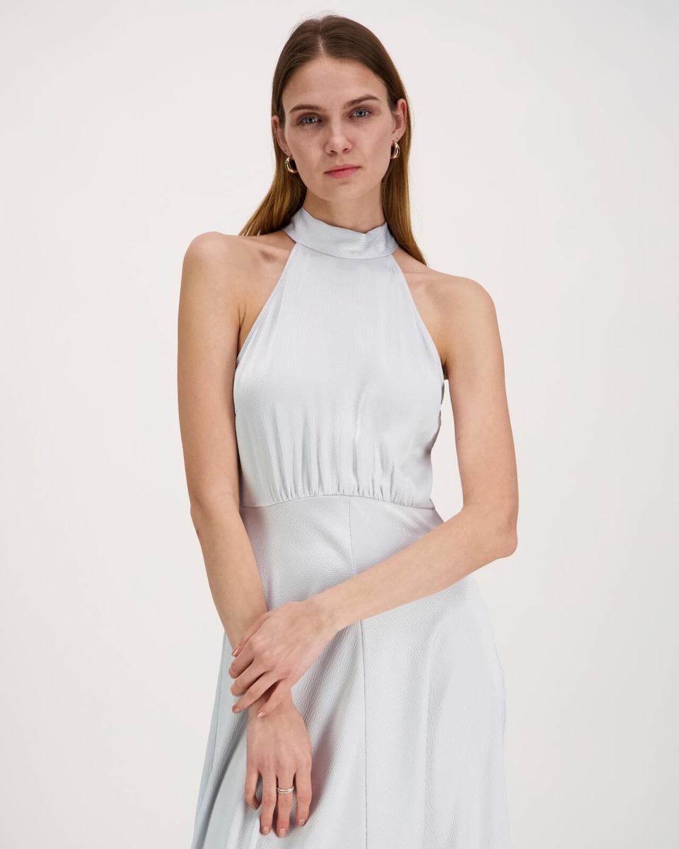 Samsøe Samsøen pitkä juhlamekko imartelevalla A-linjaisella leikkauksella ja halterneck-pääntiellä on täydellinen valinta tyylikkäisiin tilaisuuksiin. Hopean sininen sävy luo elegantin ilmeen, joka kestää aikaa. Tämä mekko yhdistää hienostuneisuuden ja mukavuuden.