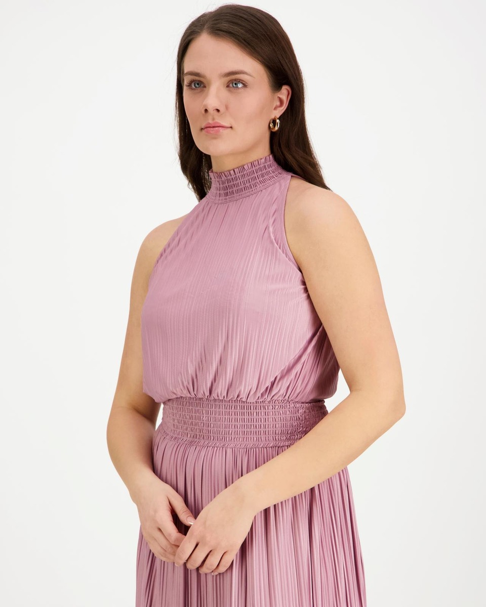 Samsøe Samsøen hihaton, korkeakauluksinen, pliseerattu mekko hurmaa tyylikkäällä siluetillaan ja laskeutuvalla helmalla. Polyesterin ja elastaanin yhdistelmä takaa miellyttävän istuvuuden ja tuotteen helppohoitoisuuden. Täydellinen valinta juhlaan tai näyttävään arkipäivään.