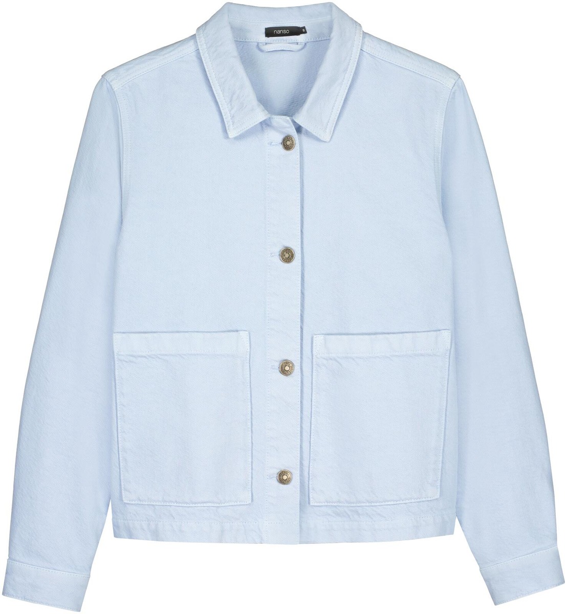 Naisten rento Mimi-takki. Väljässä laatikkomaisessa takissa on täyspitkät hihat, pudotettu olkalinja, päällitaskut sekä edessä nappikiinnitys. Takin pituus koossa 38 on noin 59 cm. Materiaali on kudottua twillsidoksista puuvillakangasta.