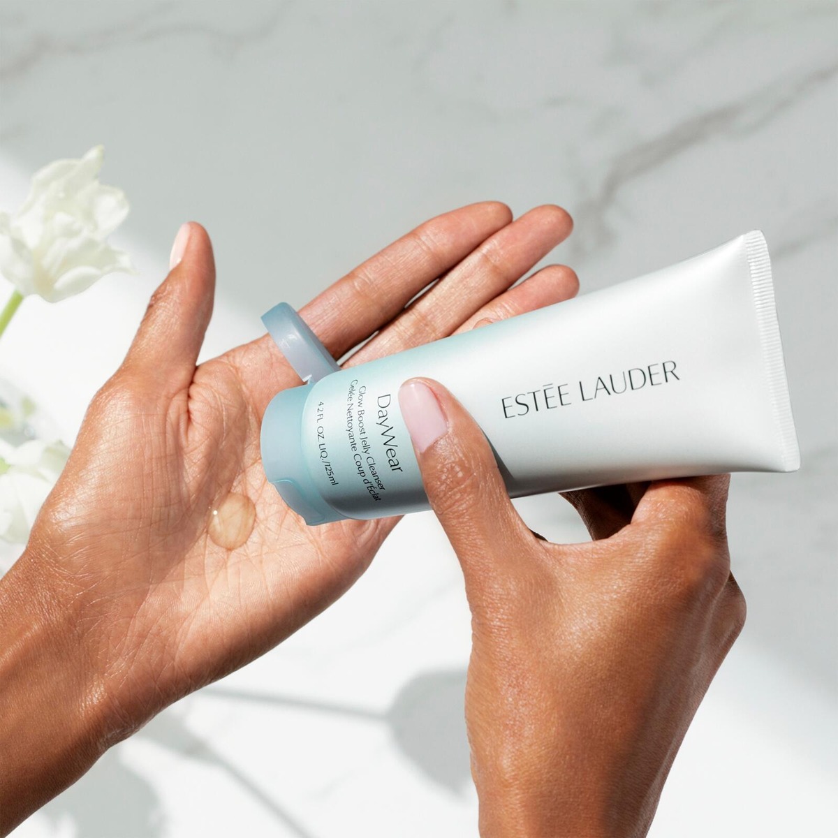 DayWear Glow Boost Jelly Cleanser muuttuu silkkiseksi vaahdoksi ja tarjoaa tehokkaan, syväpuhdistavan käyttökokemuksen, joka poistaa iholta epäpuhtauksien ja pitkäkestoisen meikin lisäksi myös aurinkosuojatuotteiden jäämät. Iho jää silkkisen raikkaaksi, puhtaaksi ja säteileväksi, jonka hehku säilyy koko päivän. Muuntautuva koostumus tarjoaa ainutlaatuisen aistikokemuksen, joka on sekä hellävarainen että tehokas.