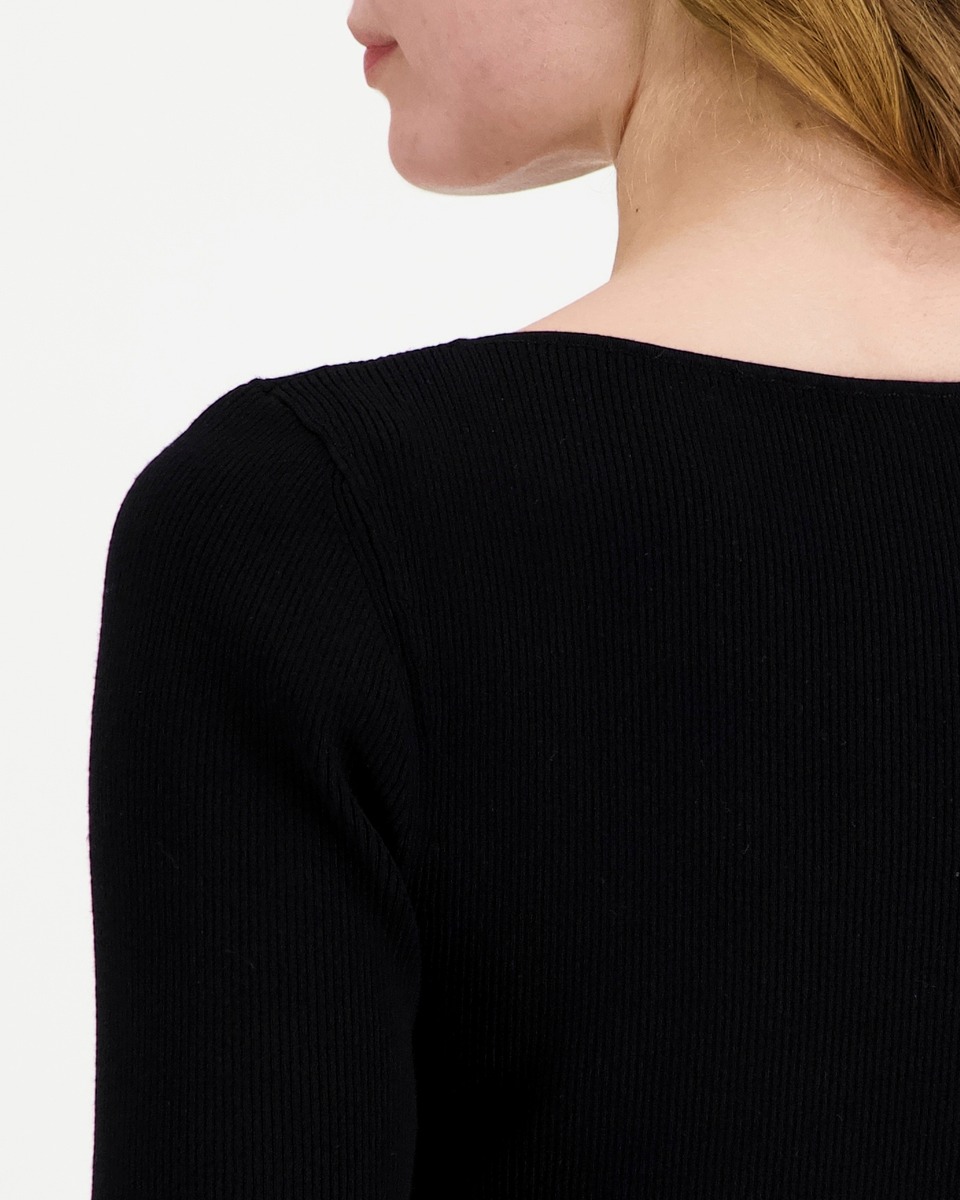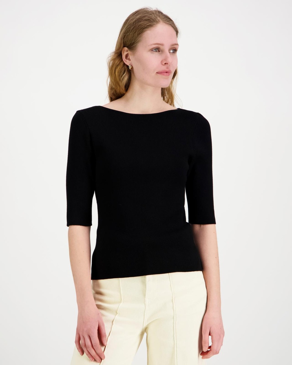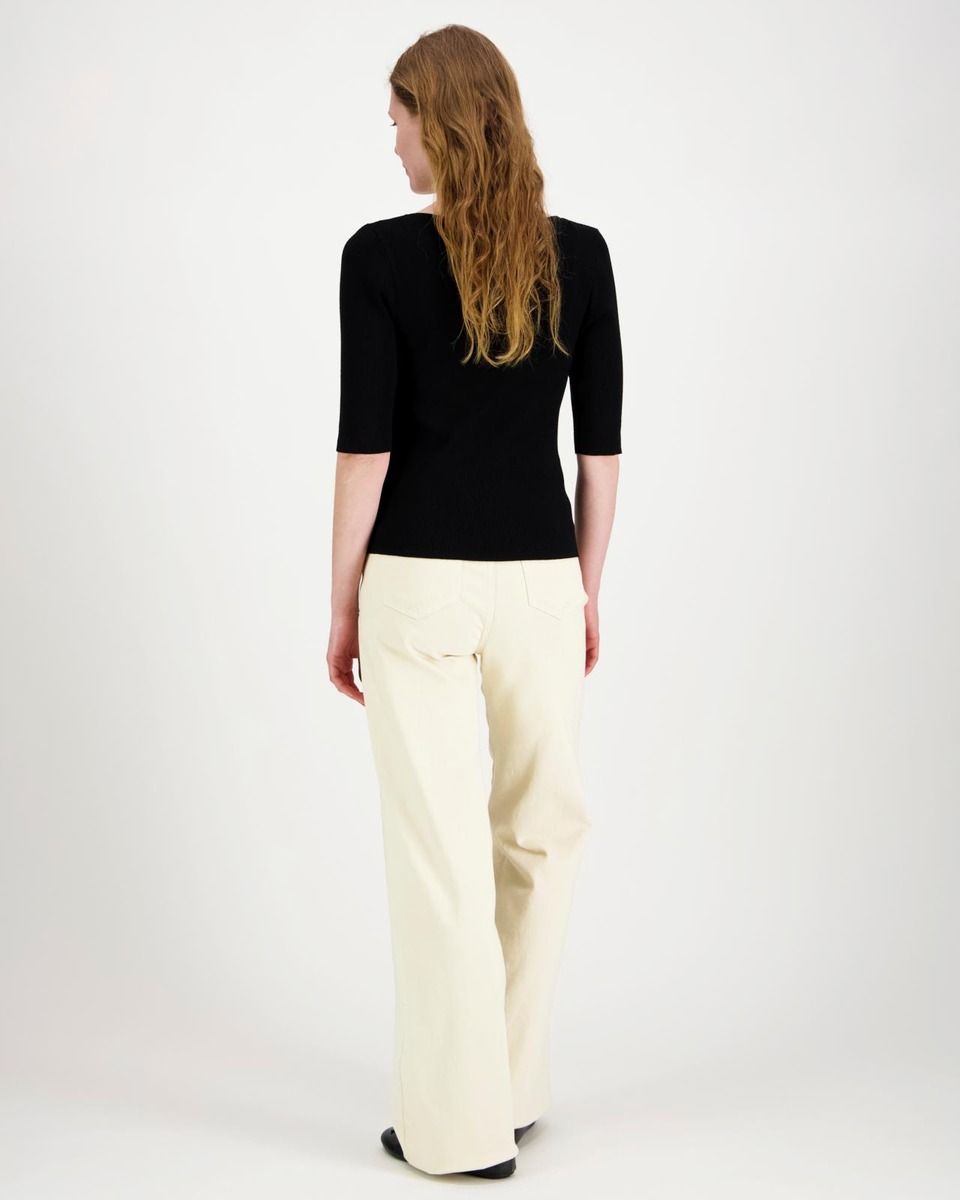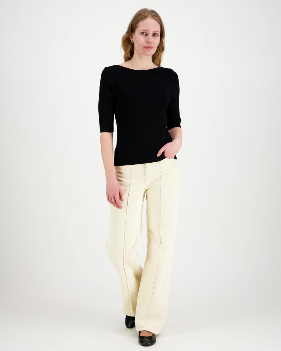 Kevyt neulottu V-aukkoinen neulepusero. Lepakkohihat. 1x1-joustinneule.