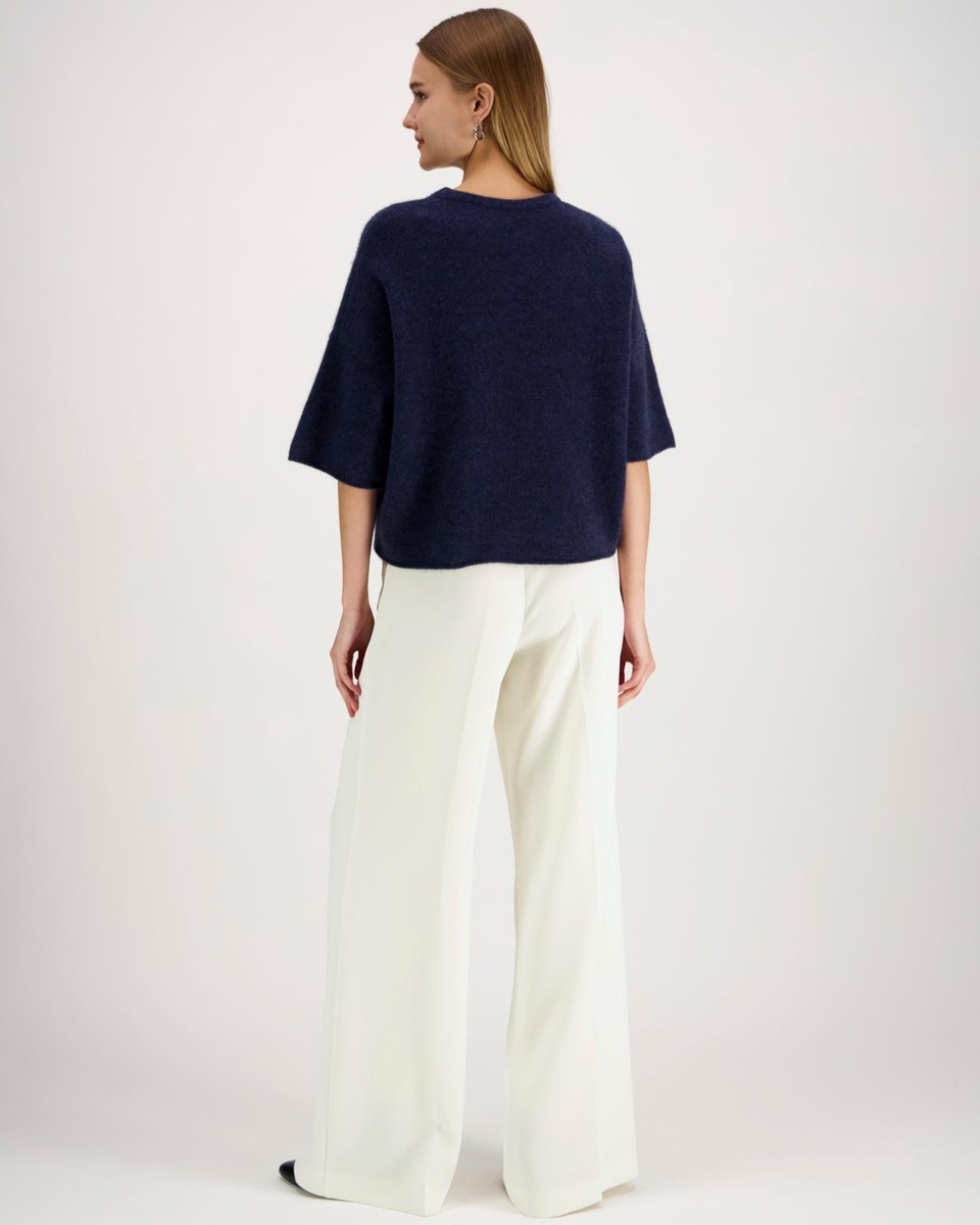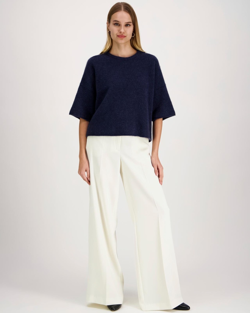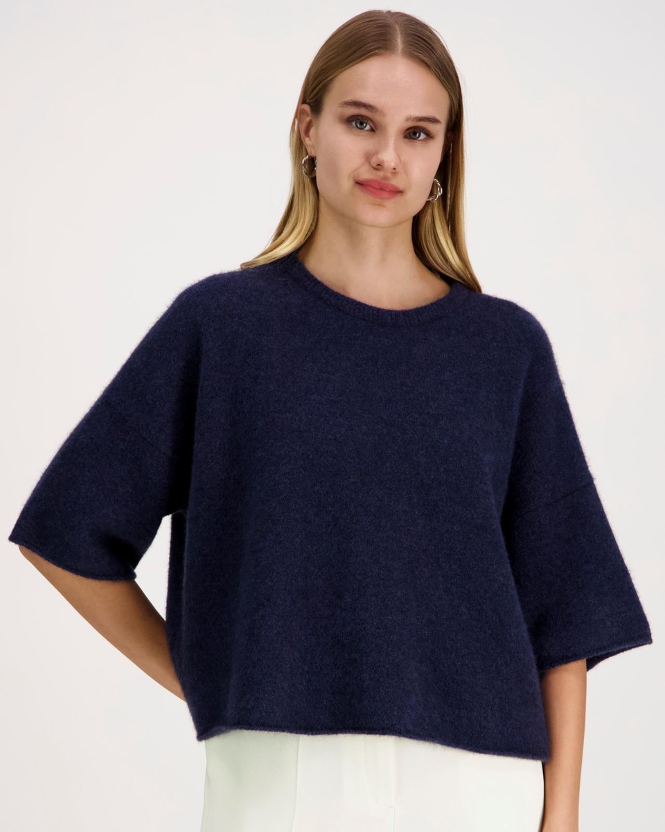 T-paitamallinen Yak neulepusero väljällä istuvuudella. Neule on valmistettu villan sekä jakinvillan sekoituksesta, johon on lisätty myös joustoa käyttömukavuuden takaamiseksi. Hartialinja on pudotettu rennon siluetin luomiseksi.