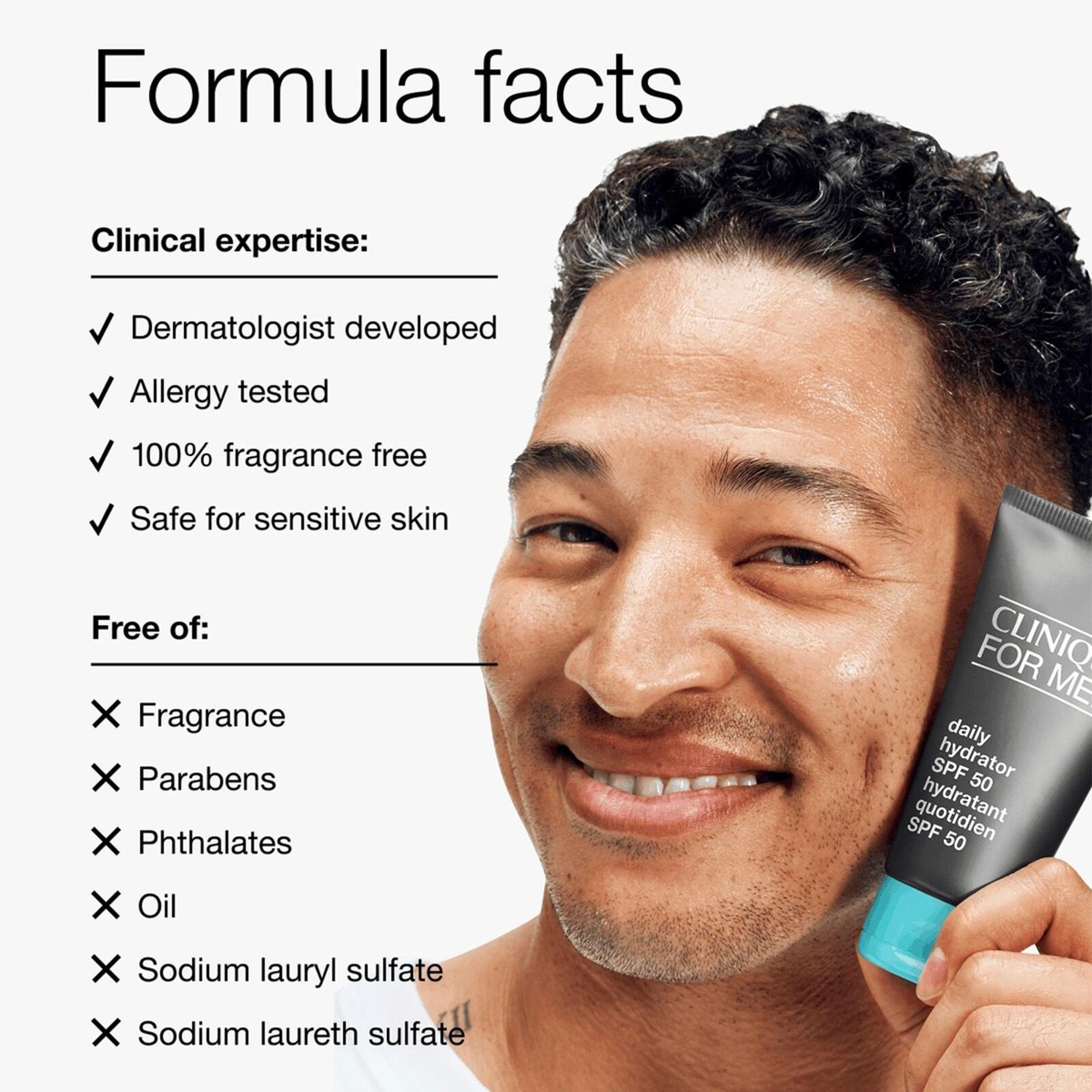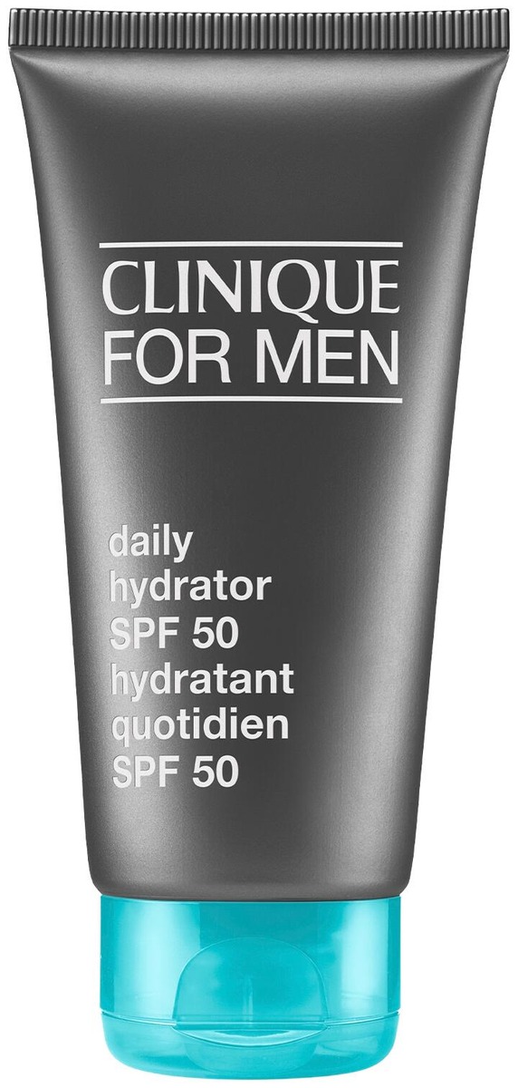 Clinique for Men Daily Hydrator SPF 50 on kevyt kosteusvoide SPF50 -suojakertoimella, joka kosteuttaa välittömästi ja auttaa samalla suojaamaan ihoa auringolta.