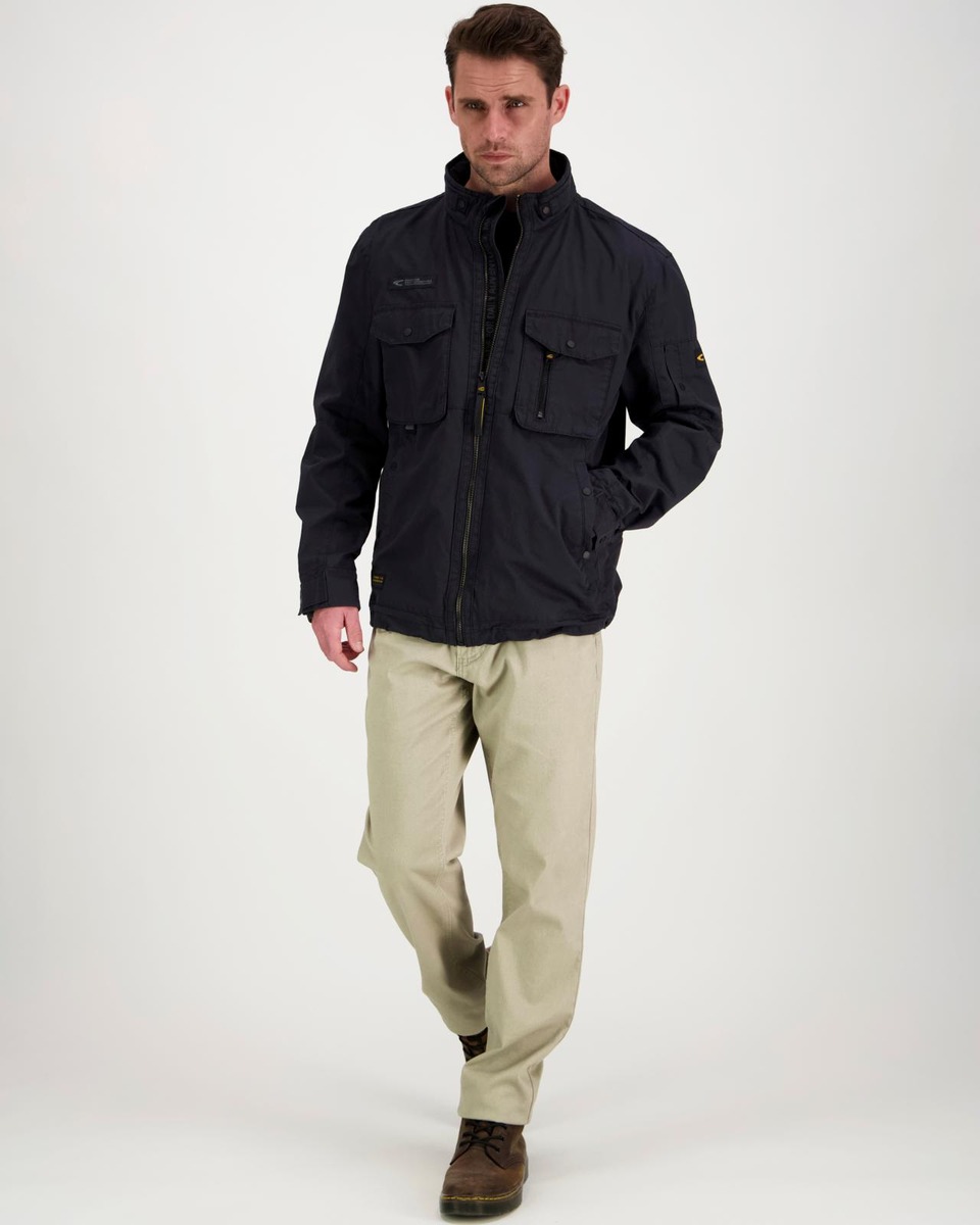 Puuvillainen ulkoilupusero pystykauluksella ja vetoketjukiinnityksellä, puolivuori. Rintataskut sekä kaksi povitaskua, sivutaskut painonapeilla. Normaali mitoitus. Takapituus 74 cm.