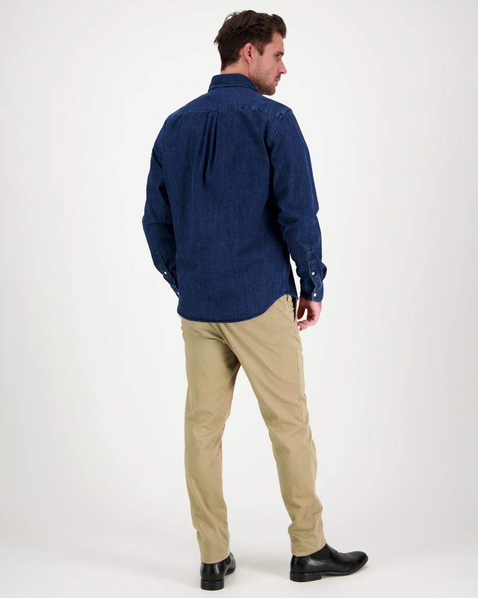 Monikäyttöinen farkkupaita, jossa on edessä yksi rintatasku sekä ns. cutaway - kaulus. Regular fit.