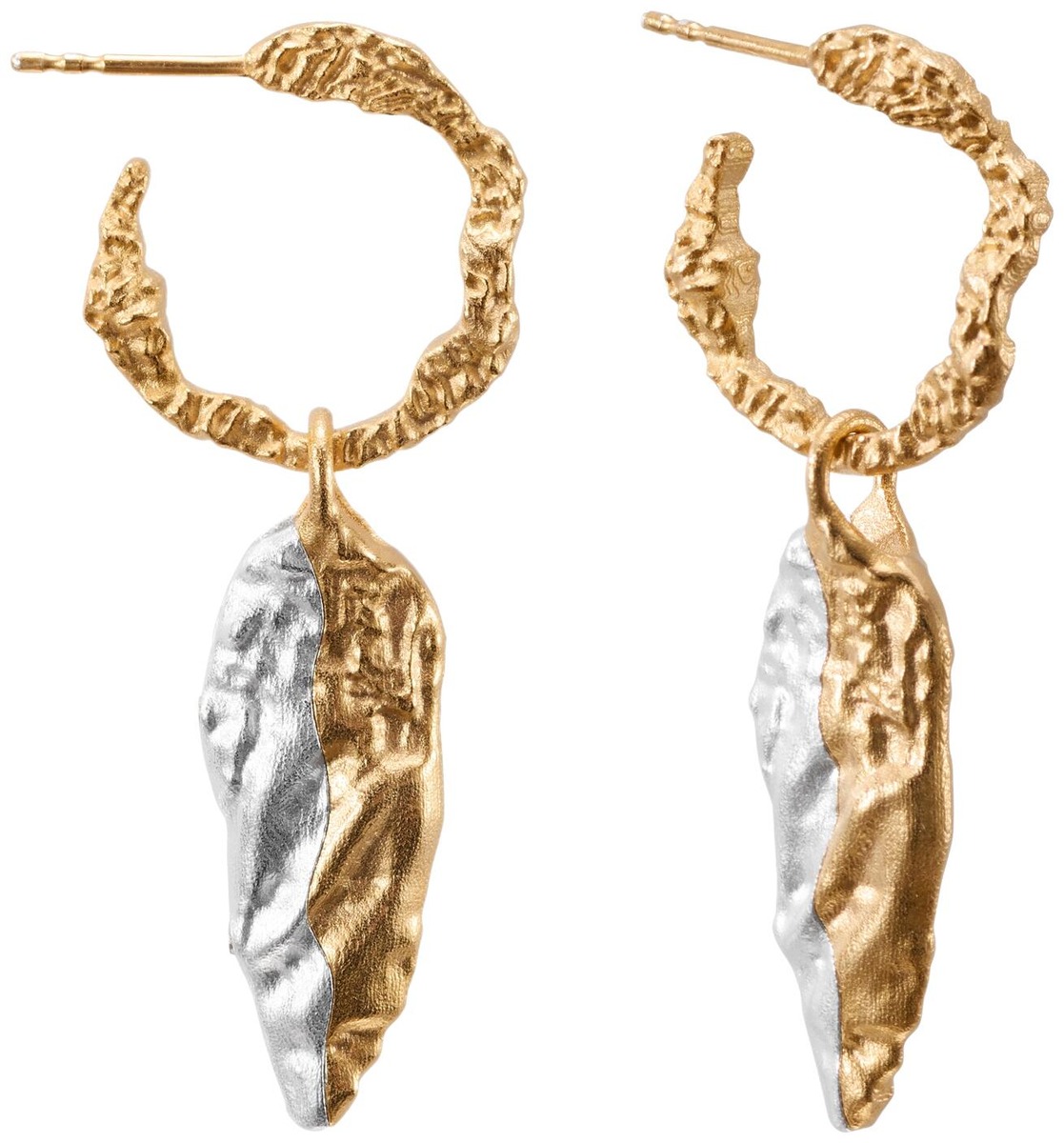 Itu-korvarenkaisiin ripustetut siemenen muotoiset helat koostuvat kahdesta toisiinsa liitetystä hopeaelementistä, joista toinen on kullattu. Kuvioitu molemmin puolin. Heloissa ja korvarenkaissa toistuu Itu-koruille tunnusomainen rosoinen, orgaaninen pinta. Korvarenkaita voi käyttää myös ilman heloja. Pituus 48,3 mm, leveys 19,2 mm. Suunnittelija Martin Bergström.