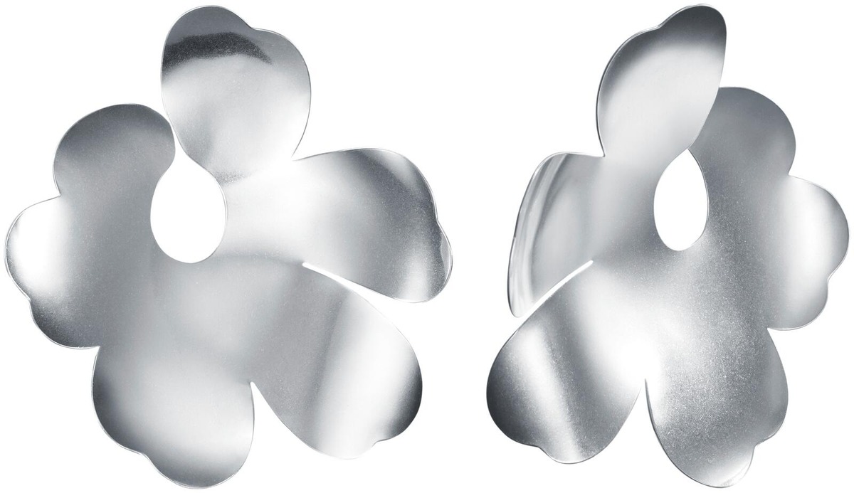 Isot Unikko-korvakorut ovat todelliset katseenvangitsijat ja koostaan huolimatta kevyet käyttää. Suunnittelussa on kiinnitetty erityistä huomiota korun istuvuuteen ja hopeapintojen yksityiskohtiin. Korvakoruissa on tappikiinnitys, ja ne ovat toistensa peilikuvat. Korkeus 60 mm, leveys 52,5 mm.