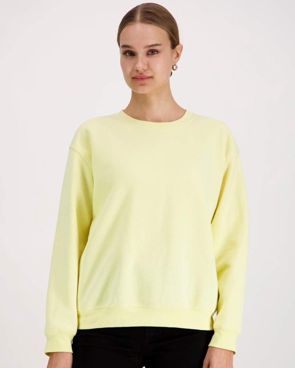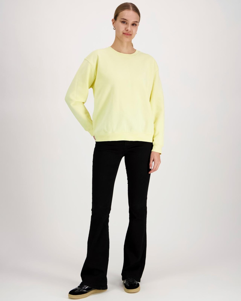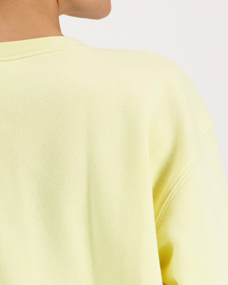 Klassinen collegepaita jossa pyöreä pääntie ja kaunis keltainen sävy.