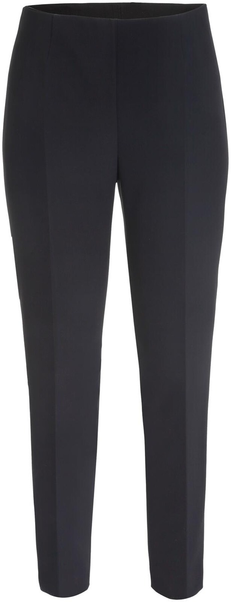 Laadukkaasta japanilaisesta triasetaatti-sekoitteesta valmistetut housut, joissa on vyötäröllä joustava ja käytössä mukava kuminauhakiristys. Housujen vyötärö on viimeistelty muotokaitaleella ja muotolaskoksilla tyylikkääksi. Mallissa on normaali istuvuus ja kapenevat, vajaamittaiset lahkeet. Materiaali on miellyttävän liukaspintainen ja monikäyttöinen niin arjessa kuin juhlassa. Lahkeen sisäpituus on 70 cm koossa 36.