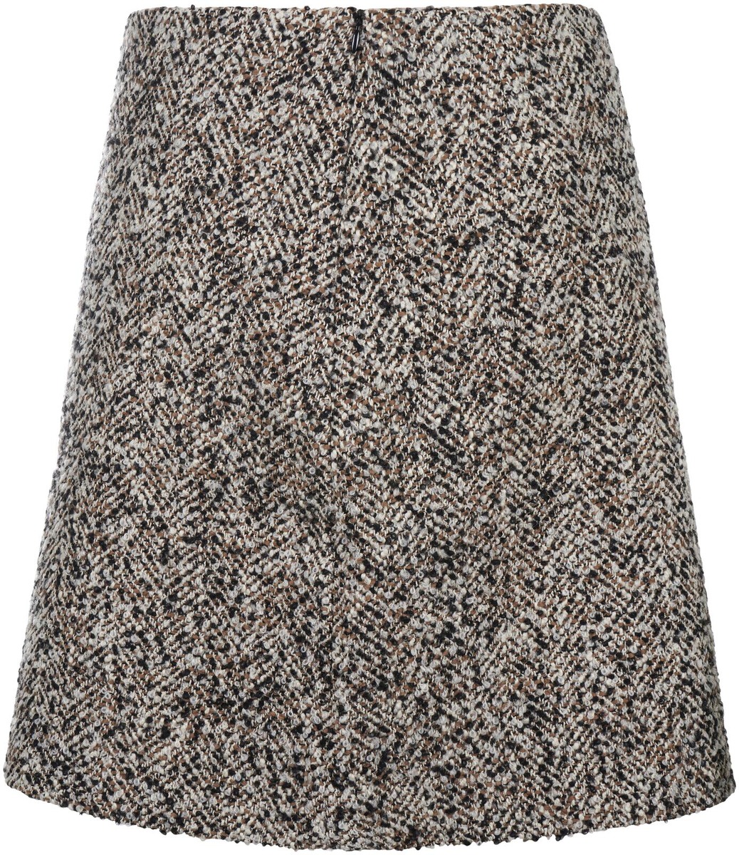 Ril's hame naisille. Minipituus. Hieman A-linjainen. Piilovetoketjusulku. Muotolaskokset takana. Tweediä. Villasekoitetta. Kokovuori.