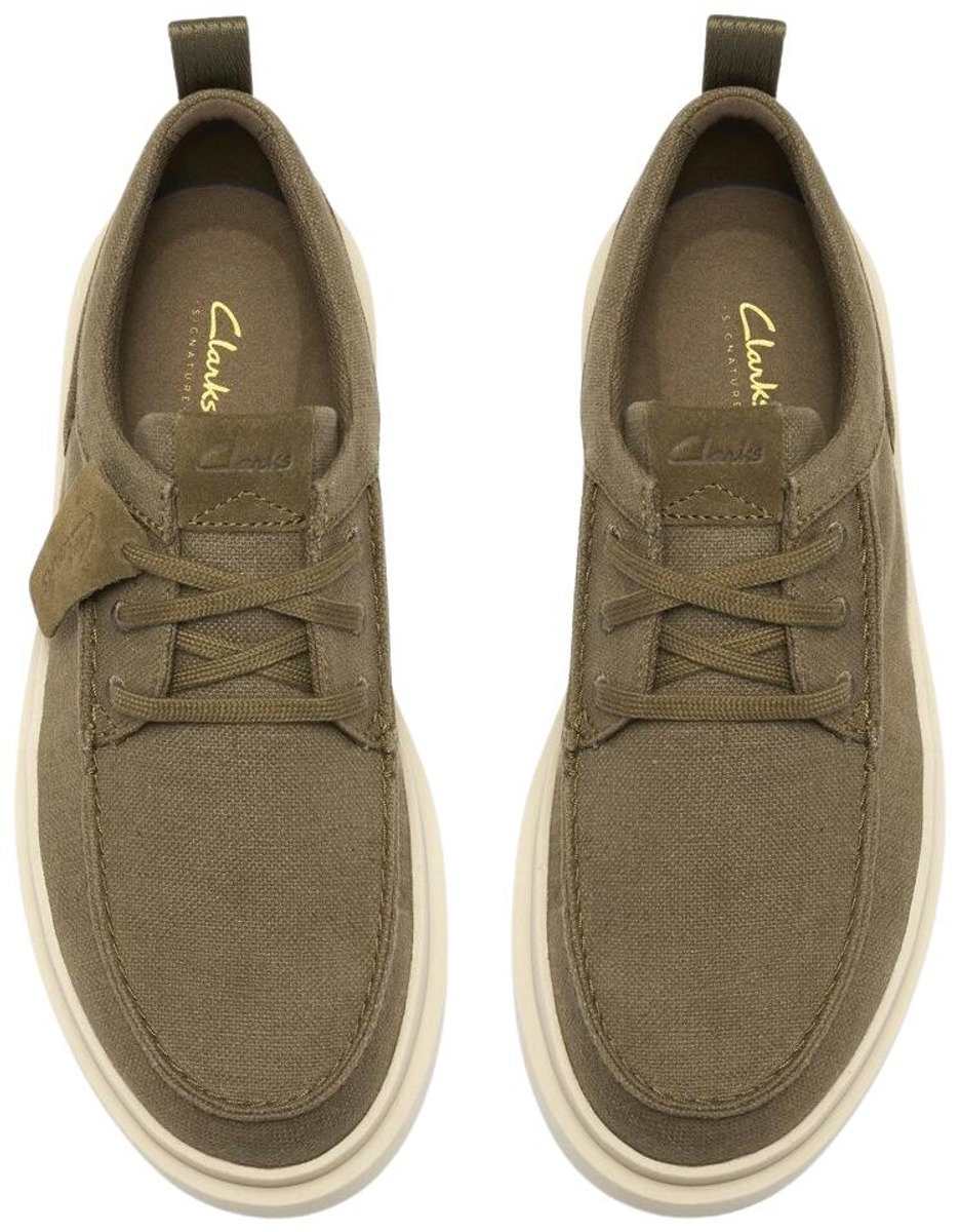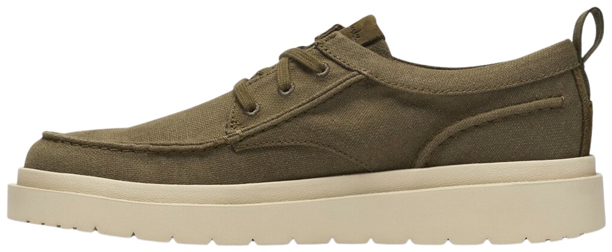Asiantuntevasti muotoiltu helppoa smart-casual-tyyliä varten, Polden Moc -nauhakenkämme on saanut inspiraationsa Desert Rainista ja 1970-luvun ikonista Ramblerista. Yhdistämällä rennon kangaspäällisen näyttäviin pohjiin ja peliä muuttavaan pehmusteeseen, tämä siirtymävaiheen moc-varvaskuvio ensiluokkaisen mokkanahan ja kankaan kanssa tekee siitä erittäin monipuolisen käytön. Jalkojen alla erittäin kevyt pohja ja irrotettava Contour Cushion -pohjallinen pitävät askeleet kevyinä kuin pilvi. Hengittävä oliivikangaspäällinen helpottaa jokapäiväistä käyttöä. Aidot nauhat ja kantapään veto tarjoavat turvallisen, yksilöllisen istuvuuden ja helpon pukemisen/riisumisen. Irrotettava Contour Cushion -pohjallinen tarjoaa kestävää mukavuutta. Erittäin pehmeä ja kevyt C360 EVA -pohja. Erottuva Clarks-arkistosuunnittelu ja kohokuvioitu Glastonbury Tor -logo.