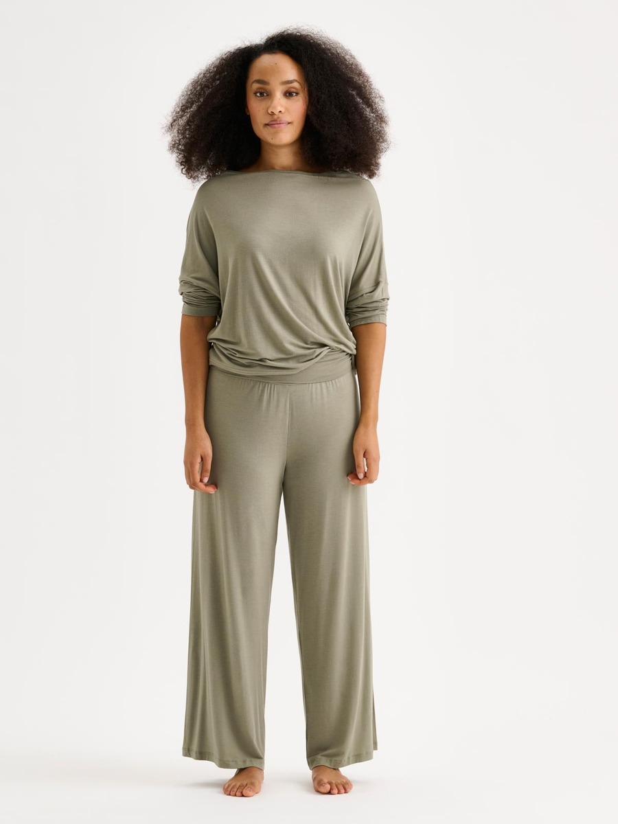 Naisten ylellisen pehmeät yksiväriset Hento-housut. Housuissa on mukava vyötärörakenne leveällä ja tukevalla tuplakaistaleella. Rennot housut ovat tyylikkäästi 7/8 pituiset. Materiaali on laadukasta, iholla miellyttävän pehmeältä tuntuvaa modaali-elastaania.