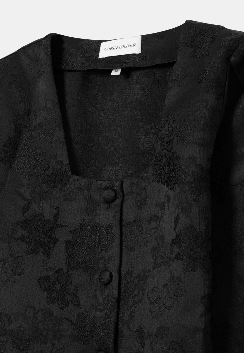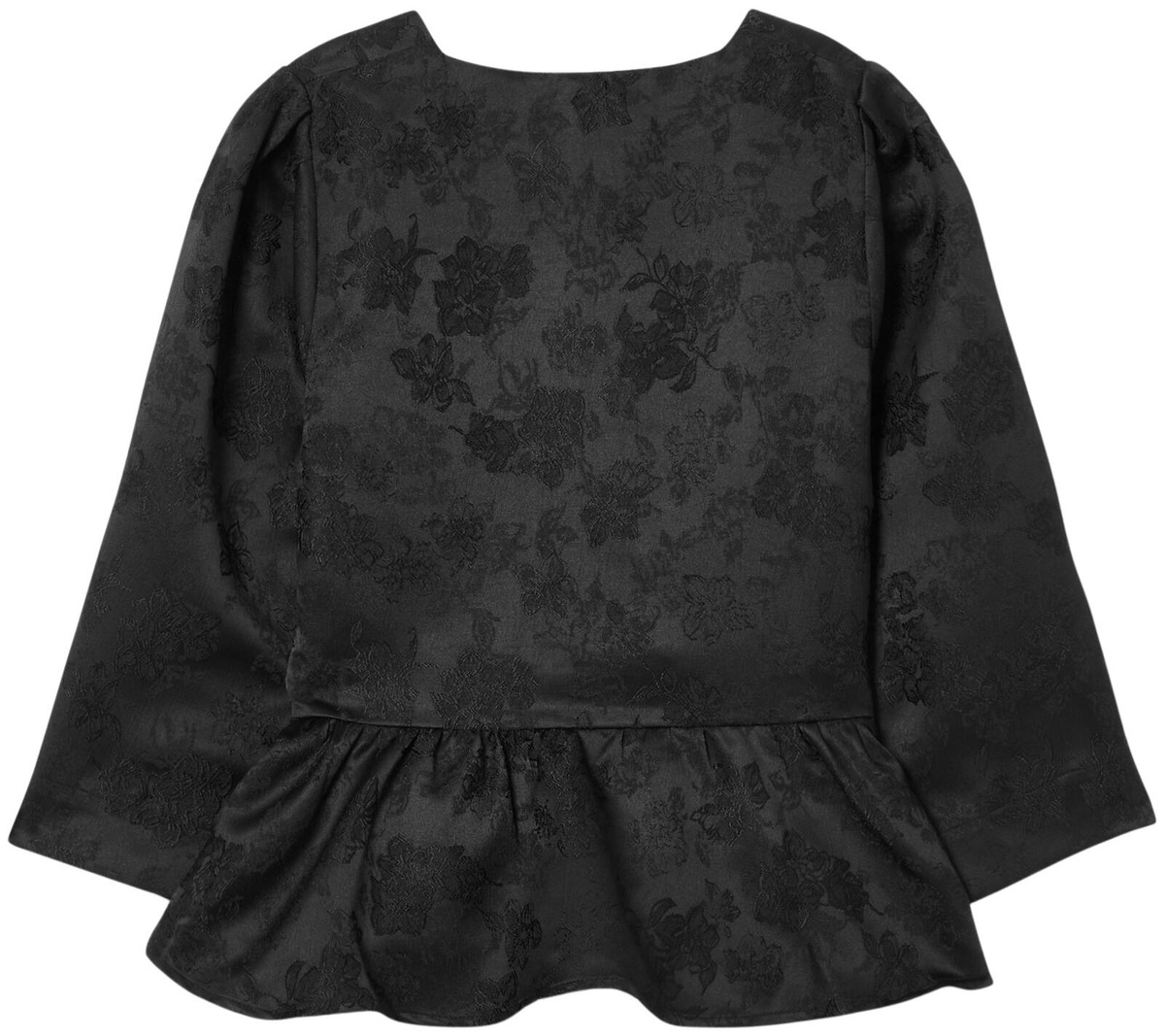 AKIKO-paita on kauniisti kuvioitu peplum-mallinen pusero, jossa on syvä, avara pääntie ilman kaulusta ja edessä tekstiilipäällysteiset napit. Pitkähihainen paita on valmistettu brokadikankaasta, jossa on näyttävä kukkakuvio. Rento istuvuus ja peplum-leikkaus tuovat ilmeeseen naisellista keveyttä ja juhlavuutta.