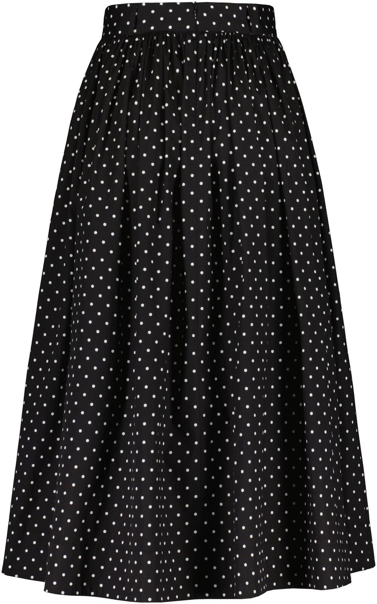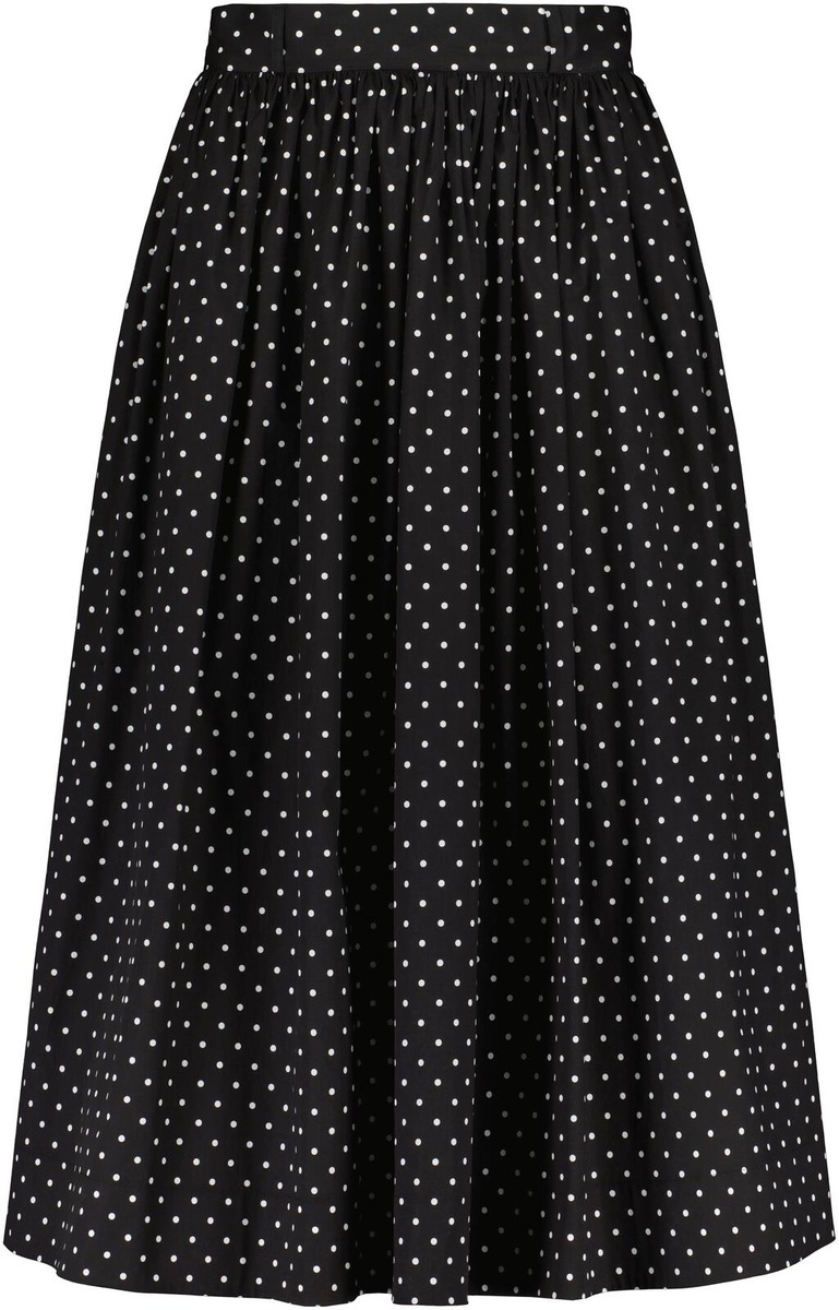 Pilkullinen poimutettu A-linjainen hame, jossa vyötärökaitale vyönlenkeillä, pohjepituinen helma, sekä sivutaskut ja piilovetoketju takana. Vuoriton. Hameessa on kiinteä vyötärökaistale, joka ei jousta. Koko 34: Vyötärö 71cm / Vyötäröltä helmaan 82cm