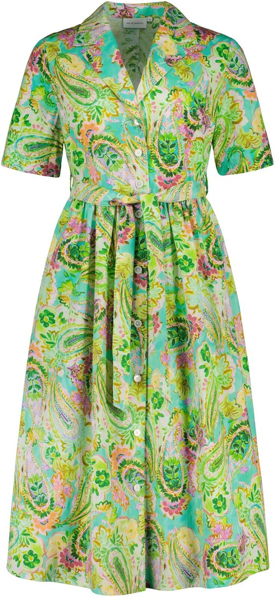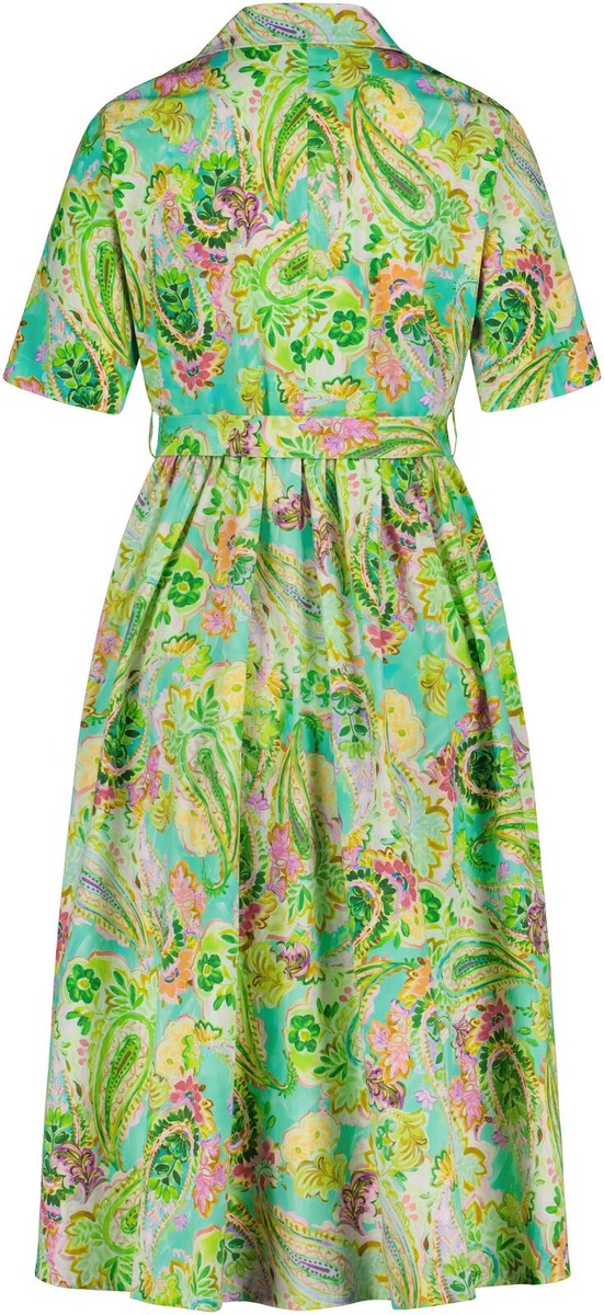 Puuvillamekko midipituisella helmalla, lyhyillä hihoilla, nappikiinnityksellä edessä sekä vyöllä.