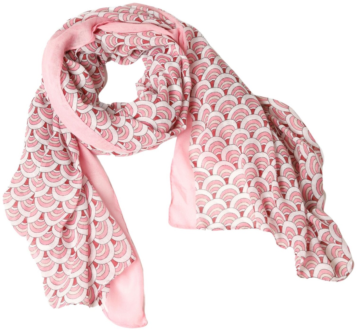 Kevyt kuosillinen viskoosi-puuvillahuivi.