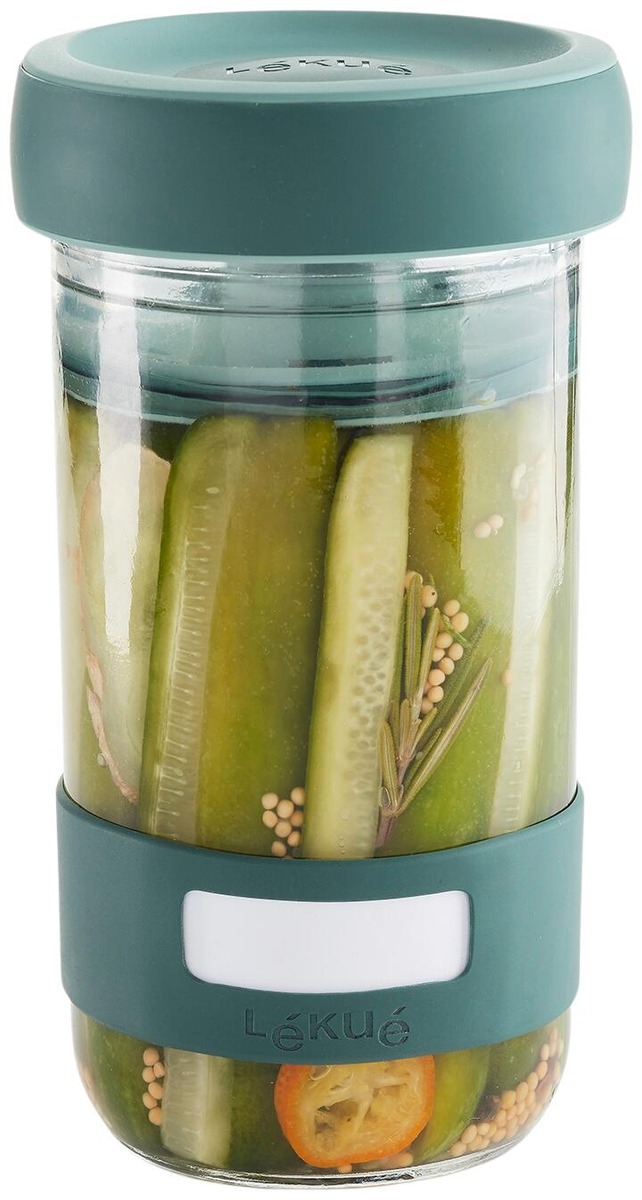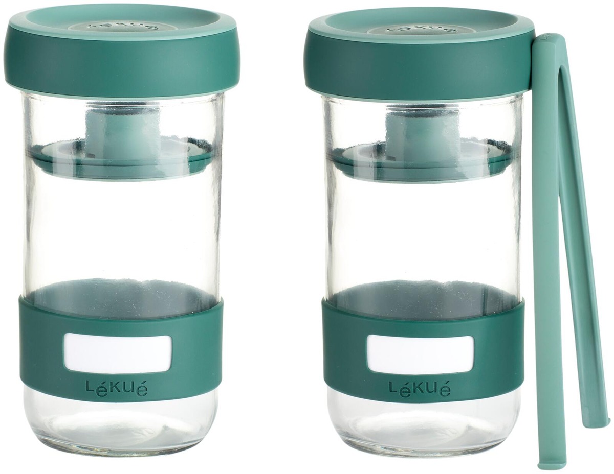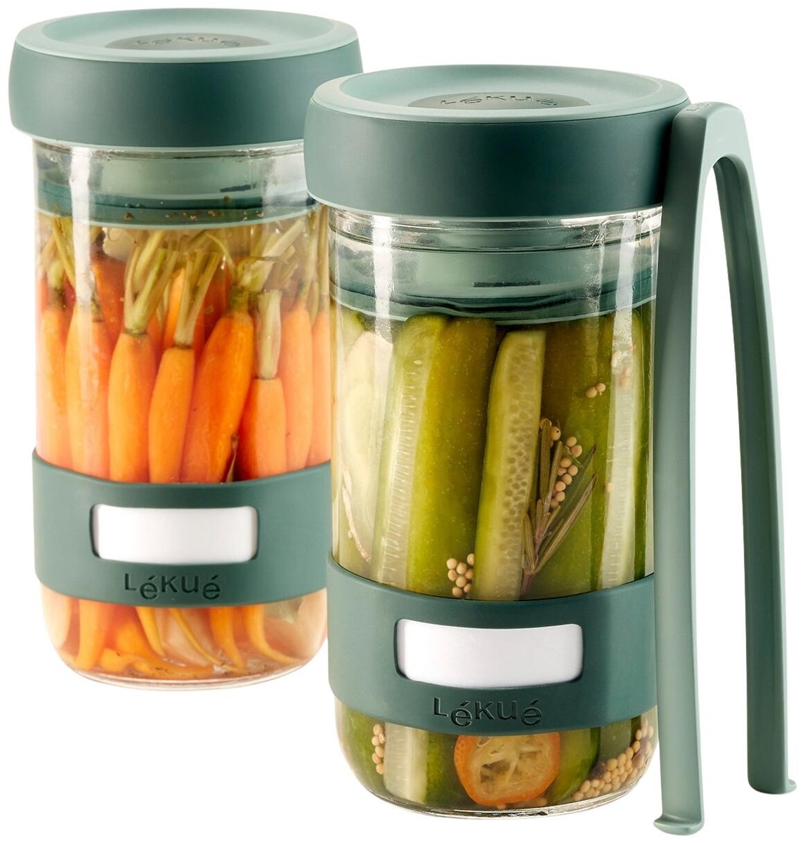 Fermentointiastia sisältää: 2 lasipurkkia (700 ml / 24 fl oz) eksklusiivisella Lékué-kannella ja venttiilillä. 2 säädettävää puristuslevyä. Kaksikäyttöiset pihdit puristamiseen ja tarjoiluun. Reseptit.