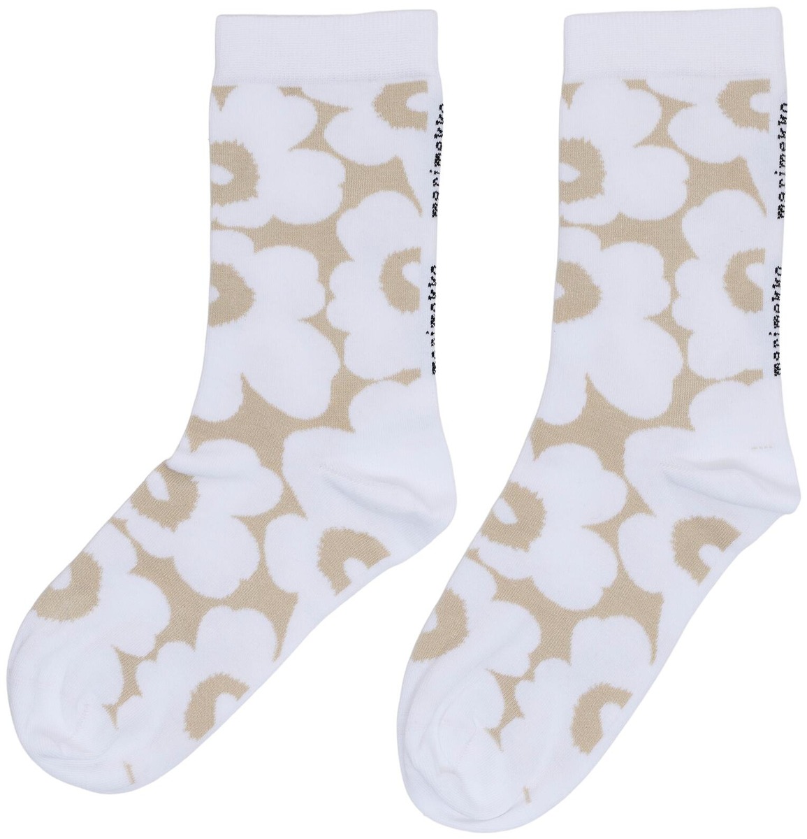 Unikko -kuosiset Linjaus-nilkkasukat on valmistettu puuvillasekoitteesta. Tuote sisältää 75 % luomupuuvillaa. Luovuutta ja rohkeutta symboloiva Unikko syntyi aikana, jolloin Marimekon kuviomaailmaan ei juuri kuulunut kukkia. Maija Isolaa kukka-aihe kuitenkin kiinnosti, ja hän päätti suunnitella kokonaisen sarjan uudenlaisia vahvoja kukkakuoseja.