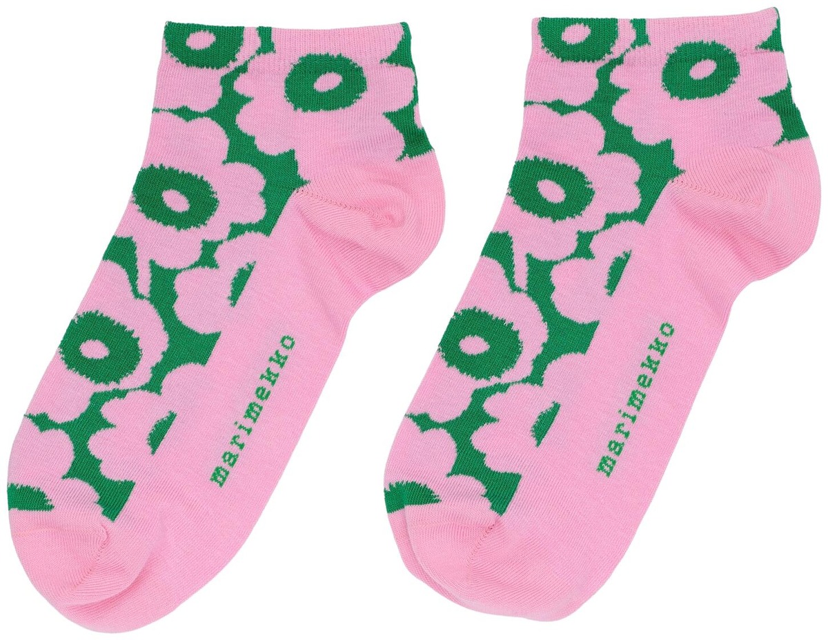 Varrettomat Rasu-sukat on valmistettu puuvillaseoksesta, ja niissä on Unikko-kuosi. Tuote sisältää 65 % luomupuuvillaa. Luovuutta ja rohkeutta symboloiva Unikko syntyi aikana, jolloin Marimekon kuviomaailmaan ei juuri kuulunut kukkia. Maija Isolaa kukka-aihe kuitenkin kiinnosti, ja hän päätti suunnitella kokonaisen sarjan uudenlaisia vahvoja kukkakuoseja.