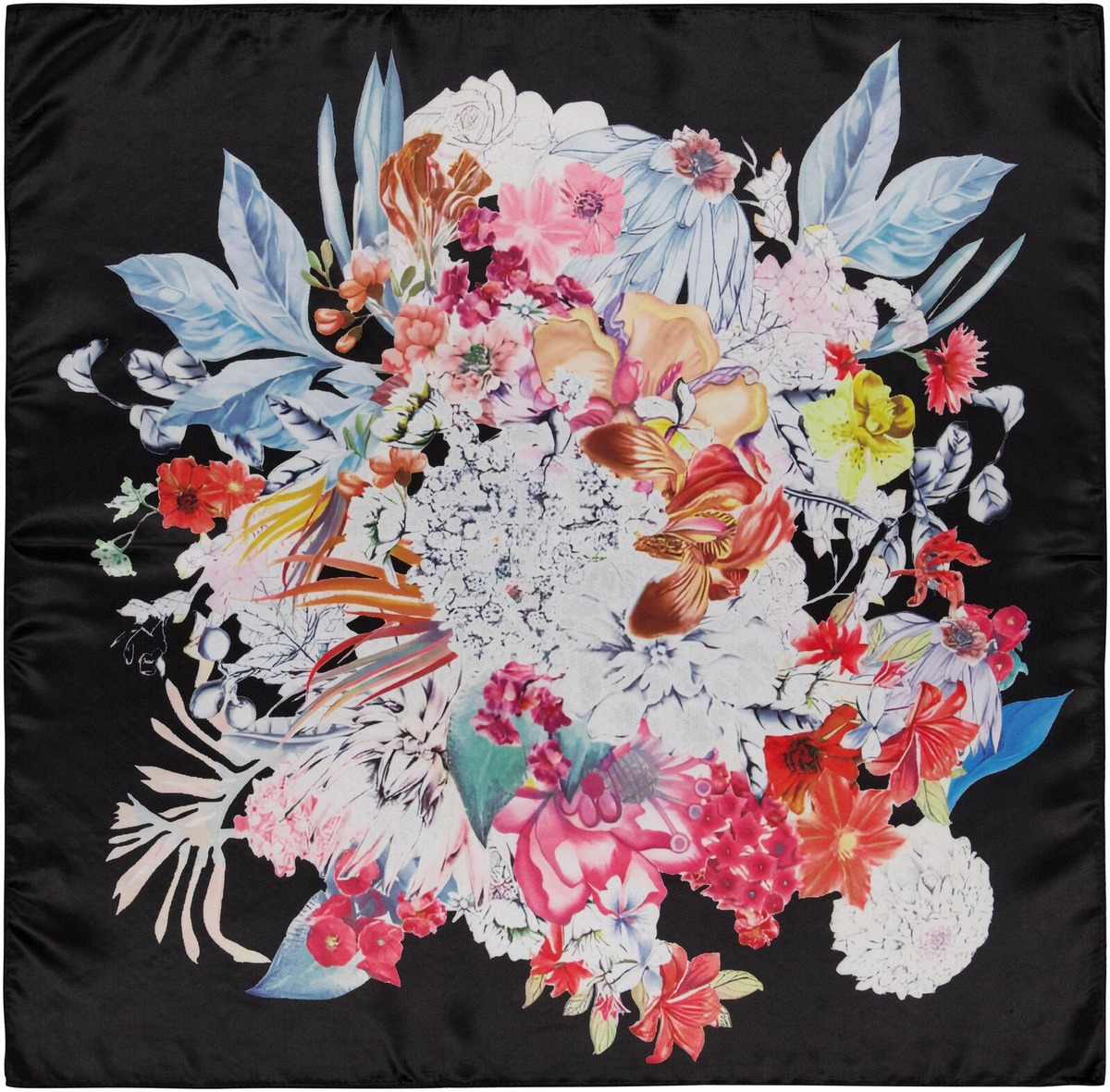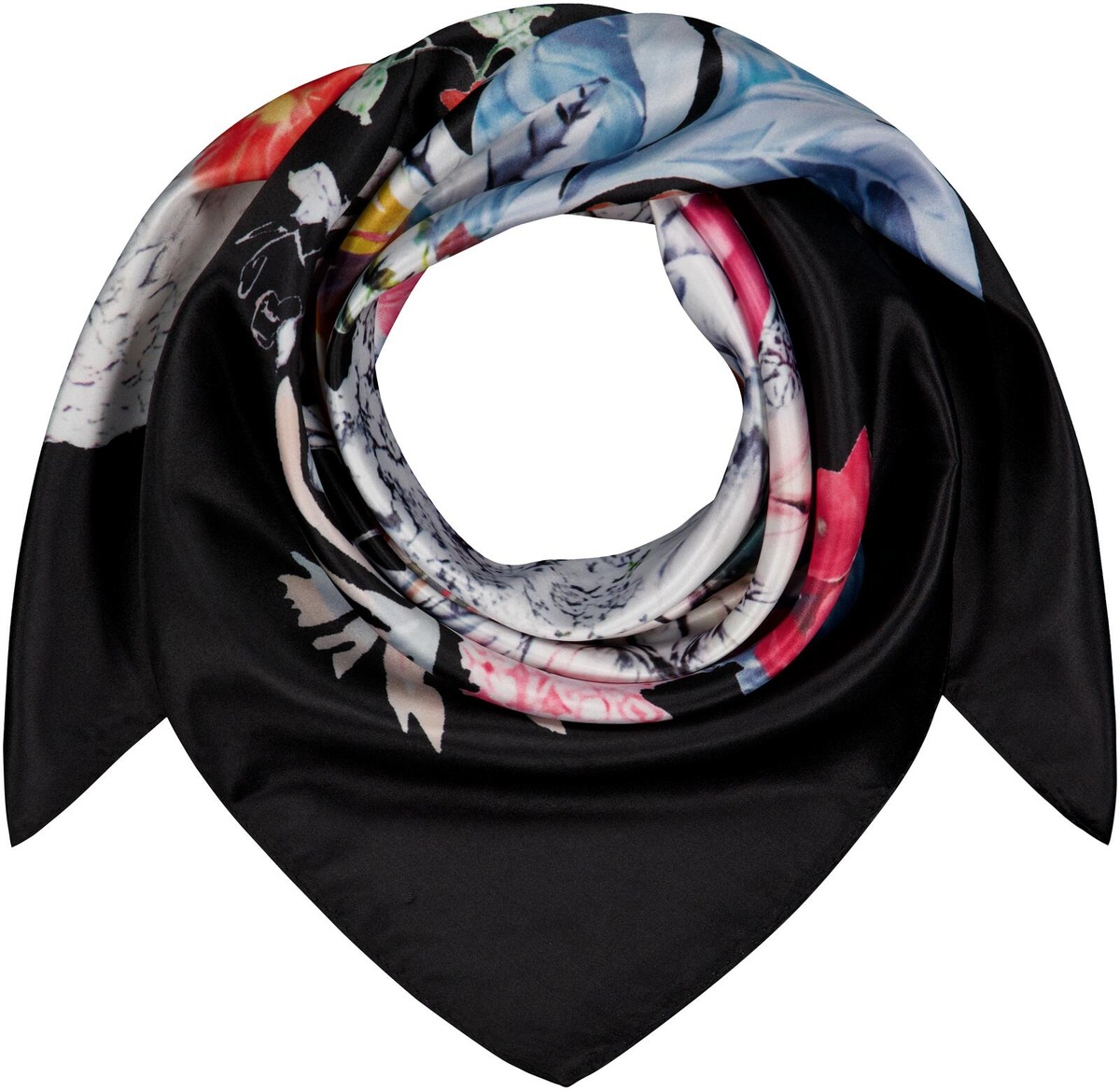 Aventuran printtihuivi kauniissa keväisessä kukkakuosissa. Huivin koko 70 cm x 70 cm.