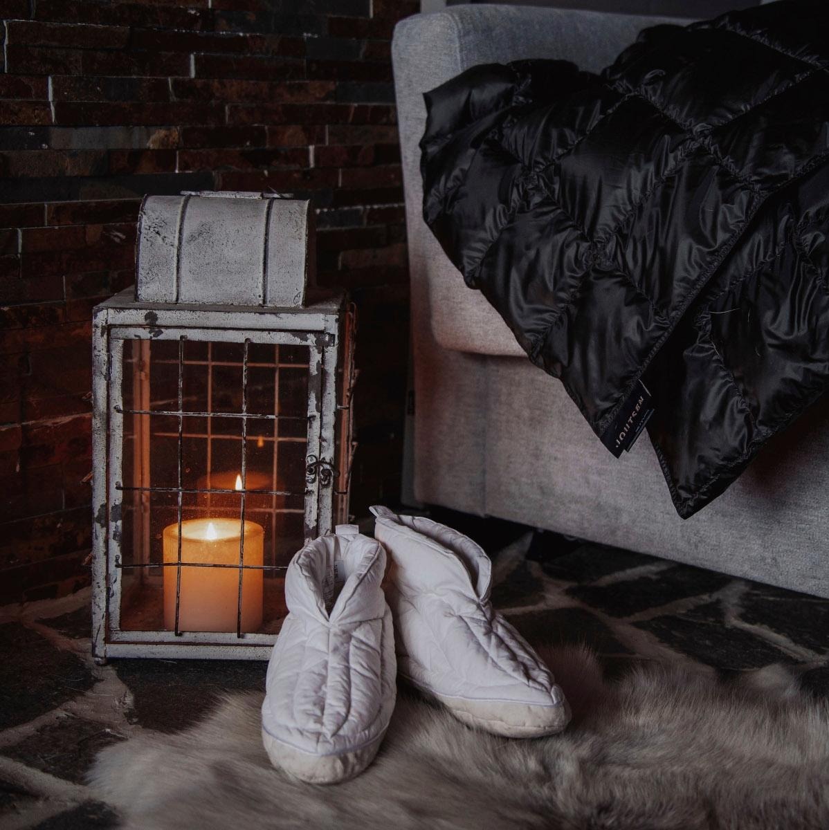 Somasti tikatut Kuiske-untuvatossut lämmittävät naisten ja lasten viluvarpaita suloisesti. Pehmoisen puuvillaisiin tossuihin sujauttaa jalkansa tyytyväisenä vuoteesta noustessa, lukiessa ja televisiota katsellessa. Onnellisia askelia siivittää hento kuiske, nupukkipohjan koskettaessa lattiaa. Untuvatossut ovat käytännöllinen ja kaunis lahjaidea. Huom! Untuvatossut on suunniteltu pehmoisiksi jalkojen lämmittäjiksi oleiluun ja rentoutumiseen. Puuvillakankainen tossu sopii tepasteluun sisätiloissa.