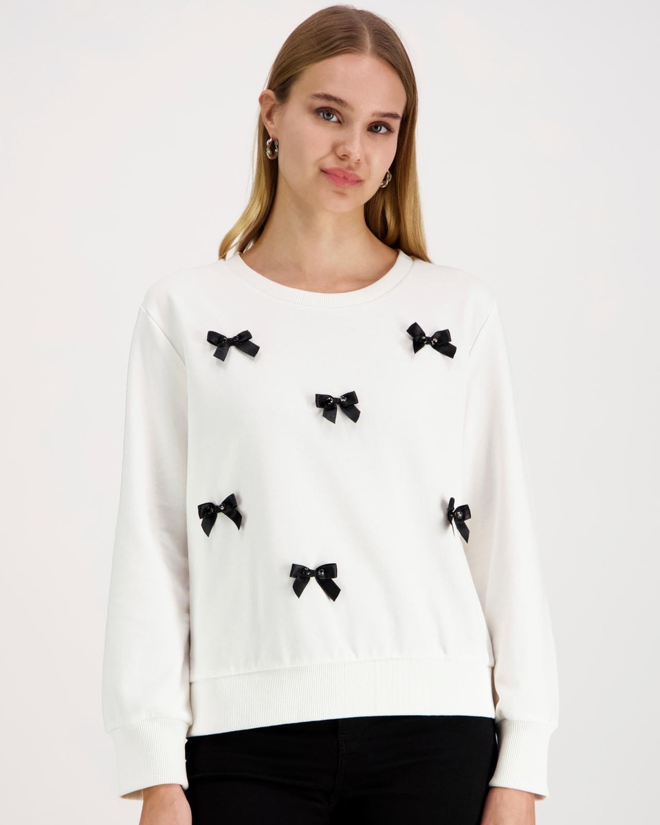 Pehmeä materiaalinen gollegepaita. Söpöt rusetit etuosassa.
