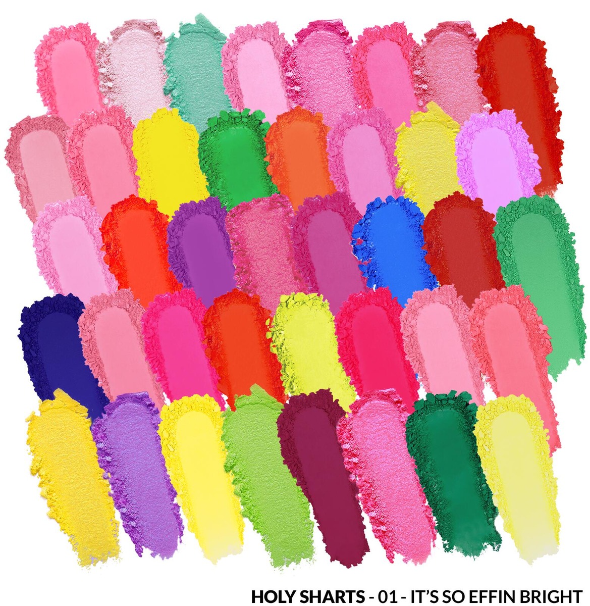 Holy Sharts on eloisa paratiisi, jossa on huimat 40 sävyä puhdasta loistoa. Puhumme sähkönsinisistä, hurjista pinkeistä, tulisista oransseista ja neonkeltaisista, jotka sytyttävät silmäsi hurjalla upeudella. Tämä paletti on värien leikkikenttä, rakkaat, ja on aika antaa luovuutesi lentää villisti!