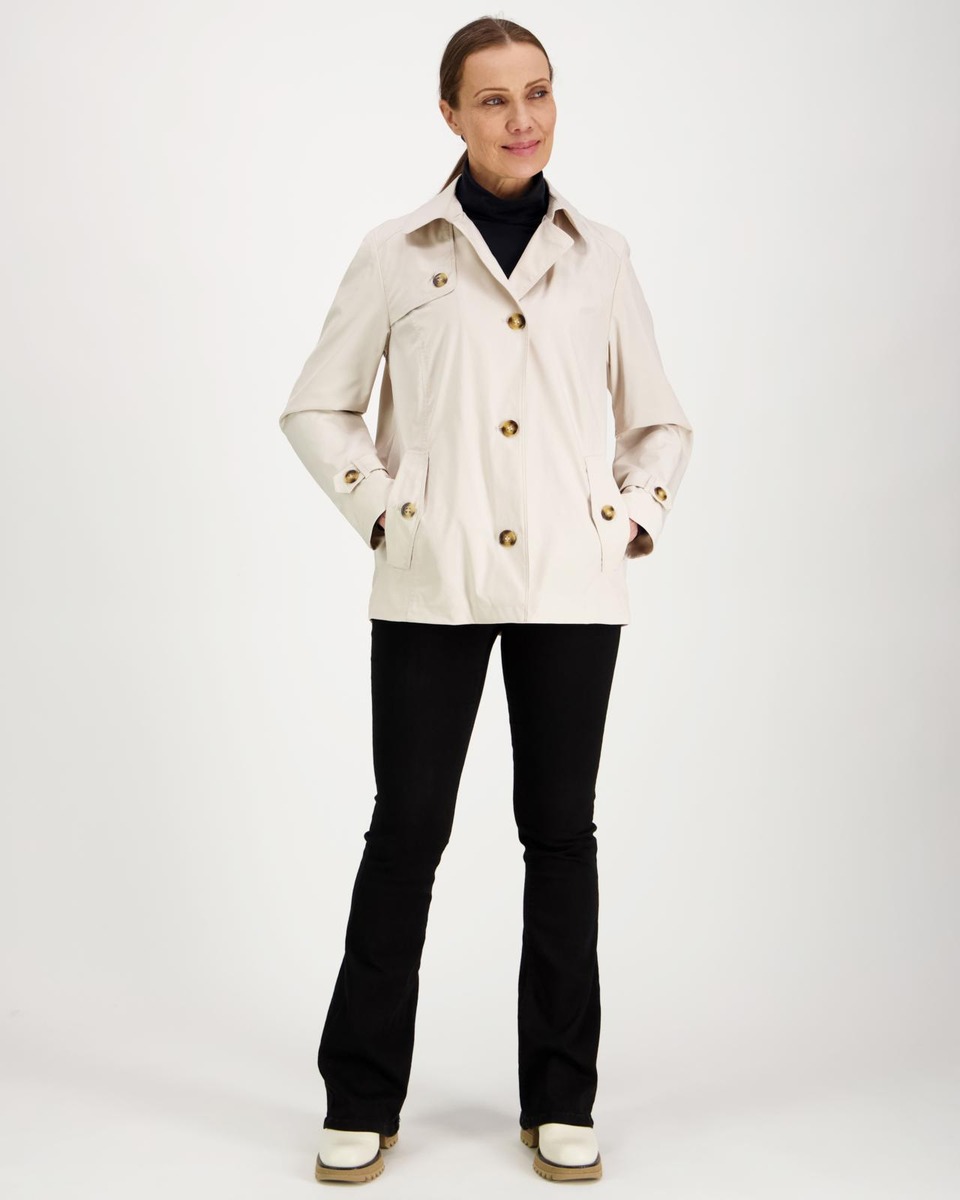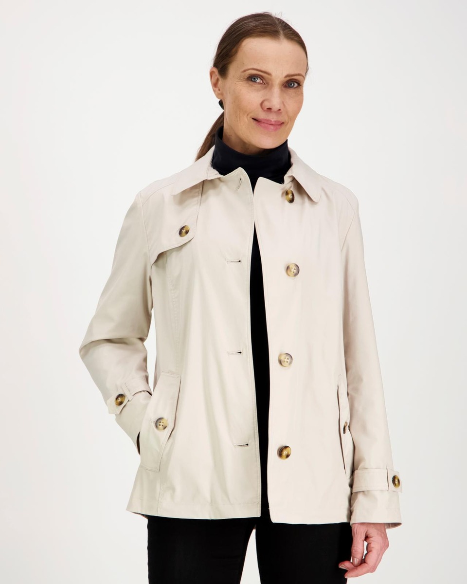 Takki on kevyt ja miellyttävä päällä, ja se sopii erinomaisesti kevään ja syksyn vaihteleviin säihin. Helppohoitoinen materiaali kestää hellävaraisen pesun ja säilyttää muotonsa pitkään. Tämä trench-takki on ajaton investointi, joka toimii vuodesta toiseen ja tuo ripauksen klassista tyyliä jokaiseen asuun.