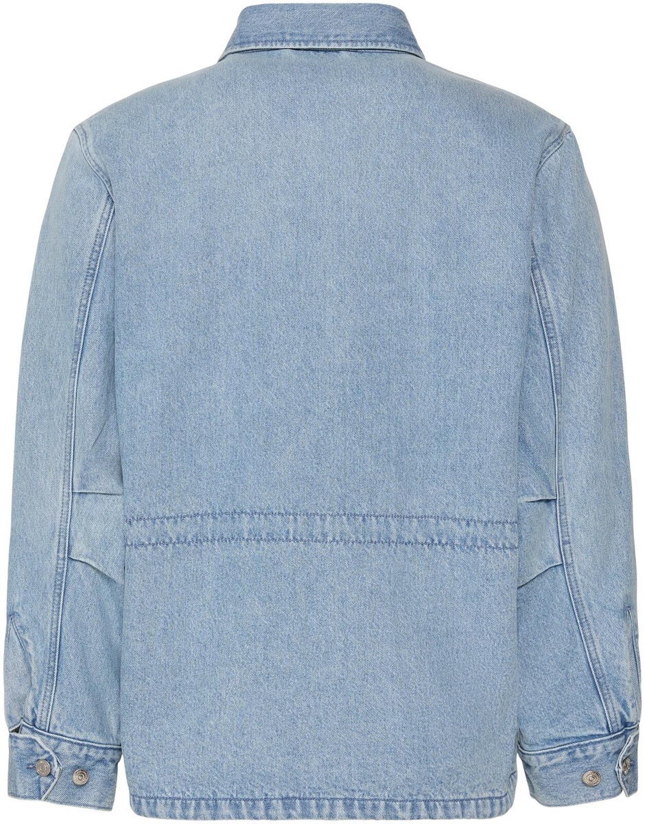 Tämä vaaleansininen denim-takki yhdistää klassisen farkkukankaan ja modernin designin. Neljä etutaskua tuovat sekä trendikkyyttä että käytännöllisyyttä, ja suora leikkaus tekee siitä täydellisen kerrospukeutumiseen. Sopii niin arkeen kuin vapaa-aikaan – yhdistä farkkujen tai mekkojen kanssa ja luo huoleton, tyylikäs look.