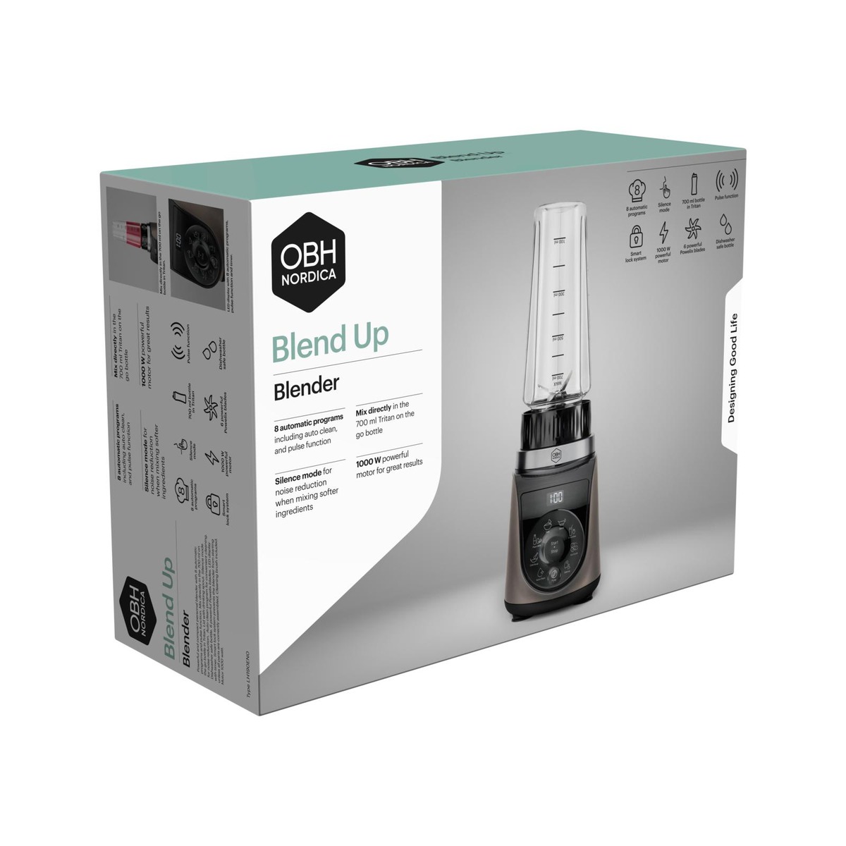 OBH Nordica Blend Up on paras sporttiblenderi opiskelijalle, teini-ikäiselle, liikuntaa harrastavalle sekä nopeita ja terveellisiä välipaloja arvostavalle. Blenderin mukana toimitetaan 700 ml:n Tritan™-pullo. Mukana tulee juomanokallinen kansi.