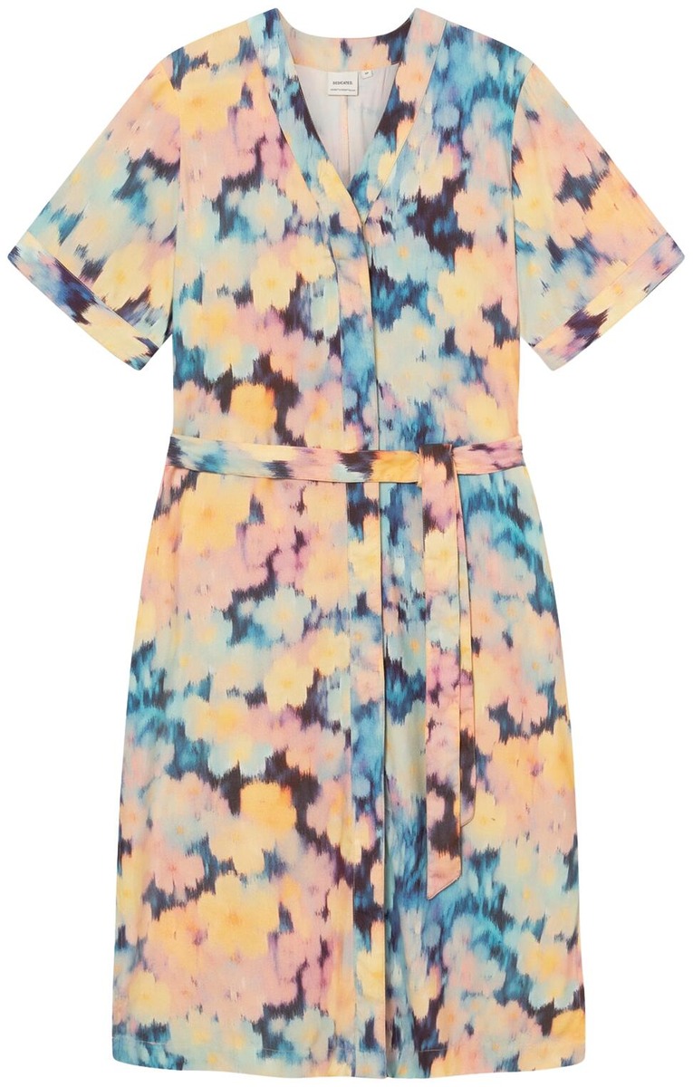 Dedicated Kallvik kuosillinen viskoosimekko on täydellinen valinta, kun haluat yhdistää tyylikkyyden mukavuuteen. Mekossa on lyhyet hihat ja edessä napitus.V yötäröllä oleva vyö korostaa kauniisti vartalon muotoja ja mahdollistaa istuvuuden säätämisen juuri sinulle sopivaksi. Mukavat sivutaskut lisäävät käytännöllisyyttä.