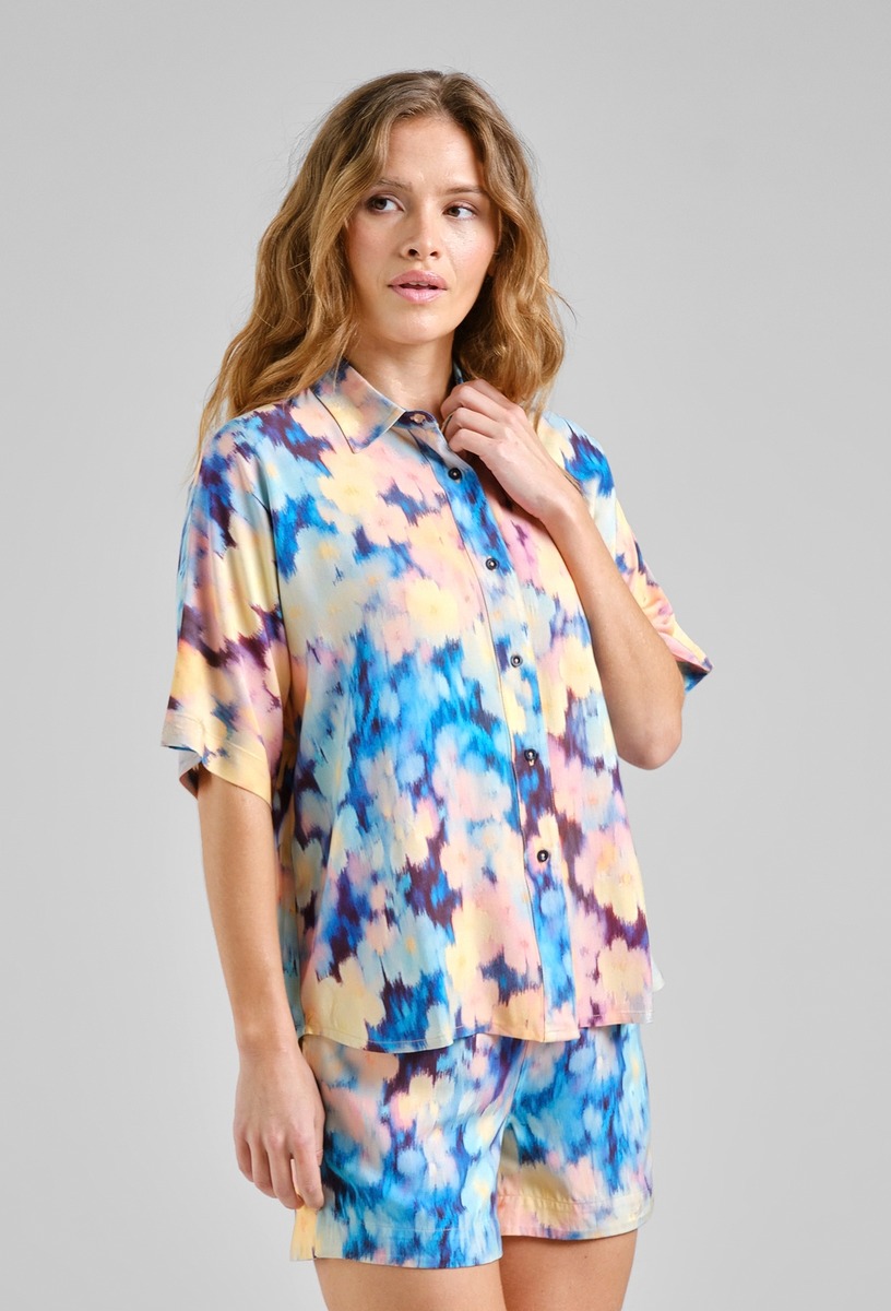 Dedicated Alsvik viskoosipusero on leikkisä ja värikäs pusero, joka tuo iloa ja raikkautta pukeutumiseen. Sen ainutlaatuinen kuosi ja väljä istuuvuus tekevät siitä täydellisen valinnan kesäpäiviin tai rentoihin tilaisuuksiin.