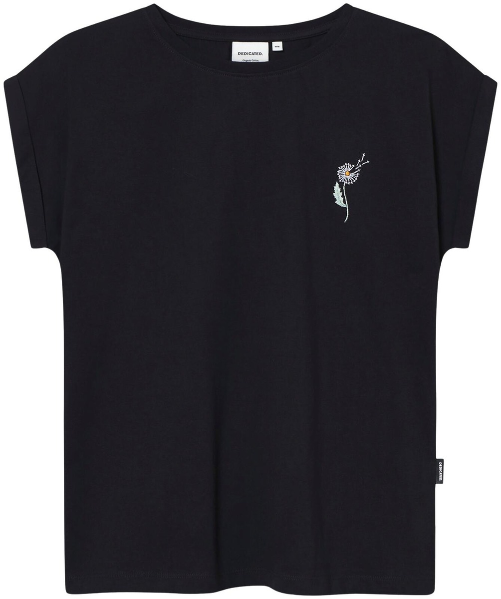 Dedicated Visby tyylikäs musta t-paita tuo vaatekaappiisi ripauksen eleganssia ja hienostuneisuutta. T-paidassa on hienovarainen voikukka-printti. Tämä paita on täydellinen valinta rentoon mutta tyylikkääseen arkipukeutumiseen. 100% luomupuuvillaa.