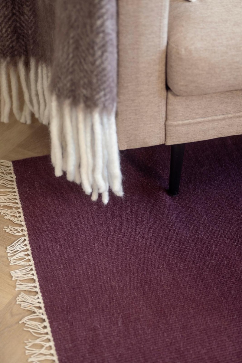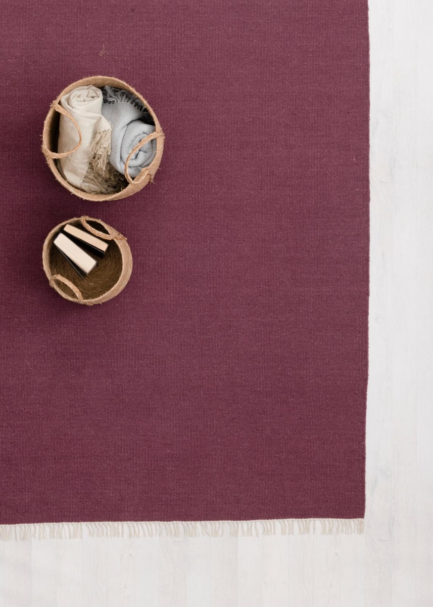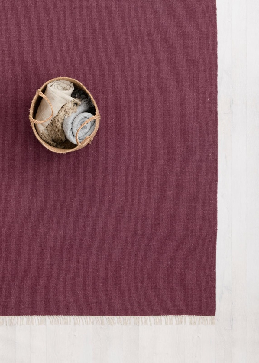 Koko 160x230 cm. Väri viininpunainen. Materiaali villa, loimi puuvilla.
