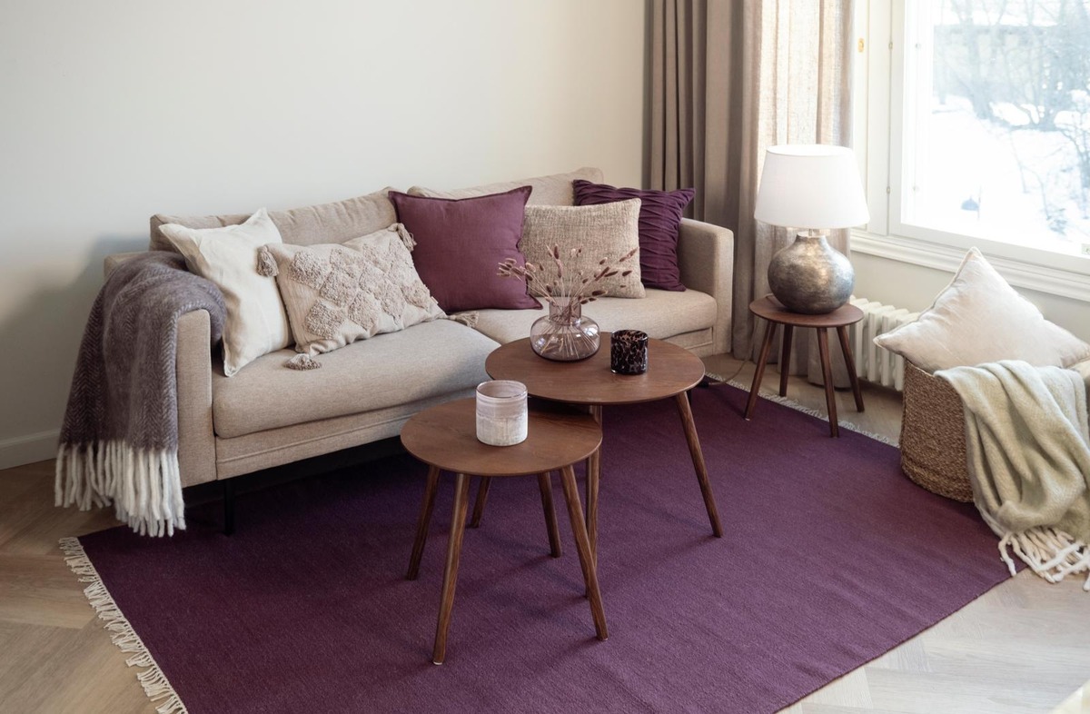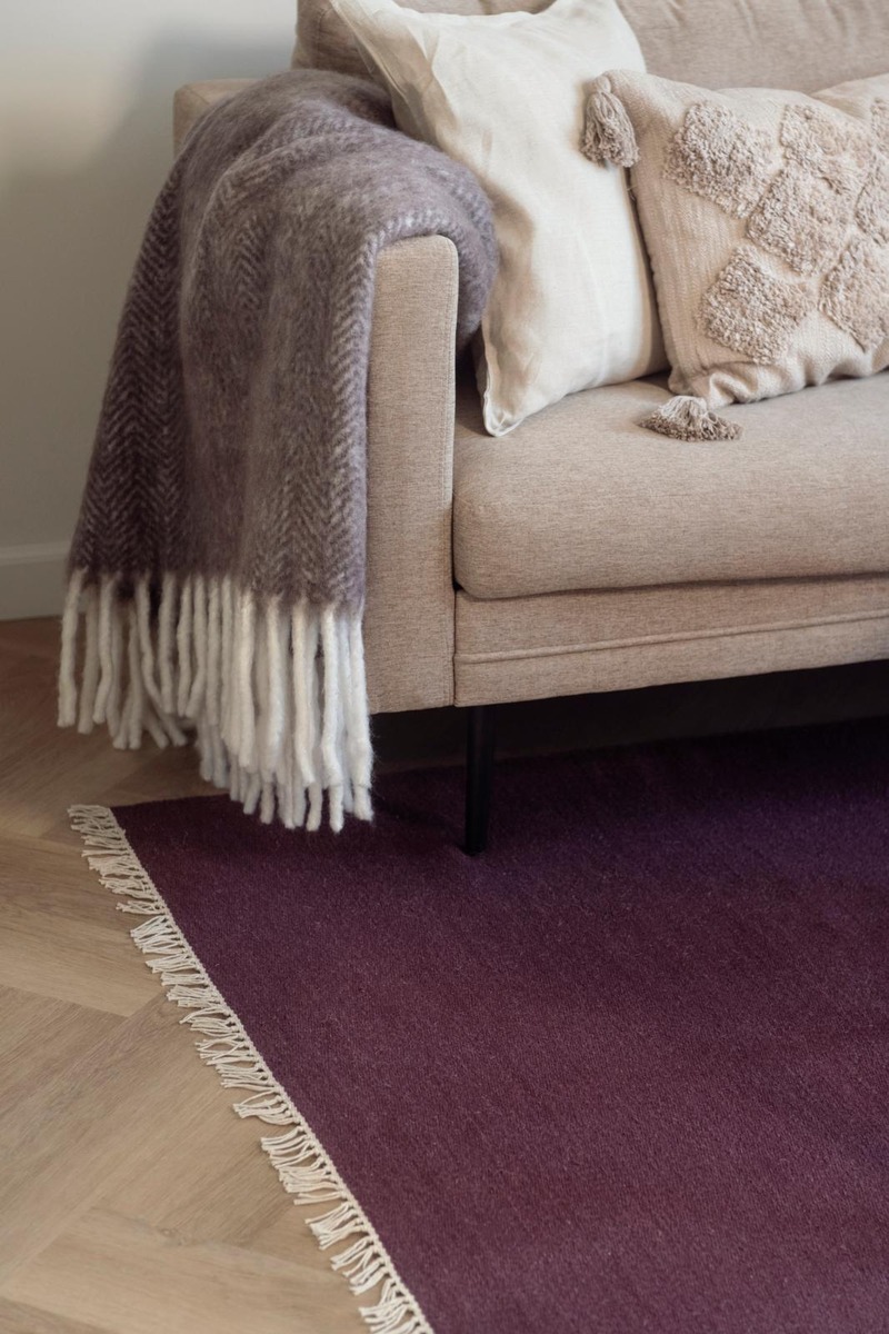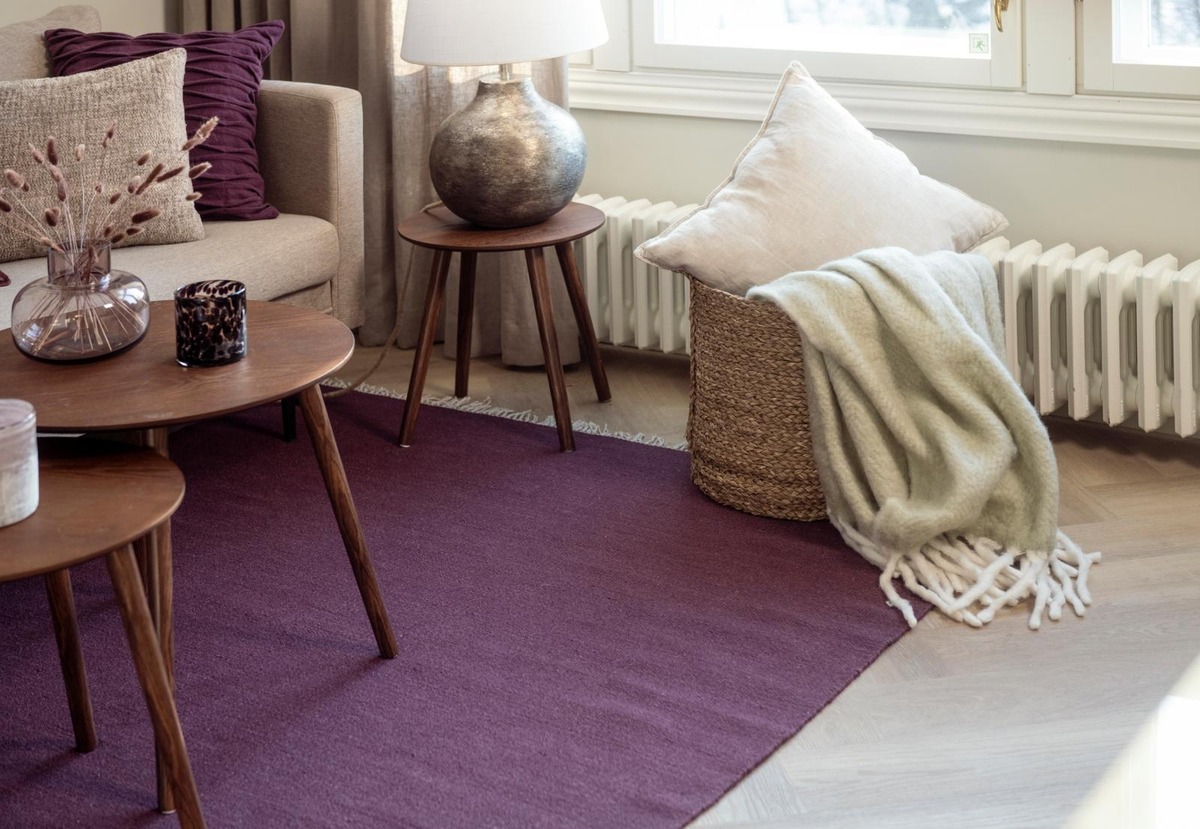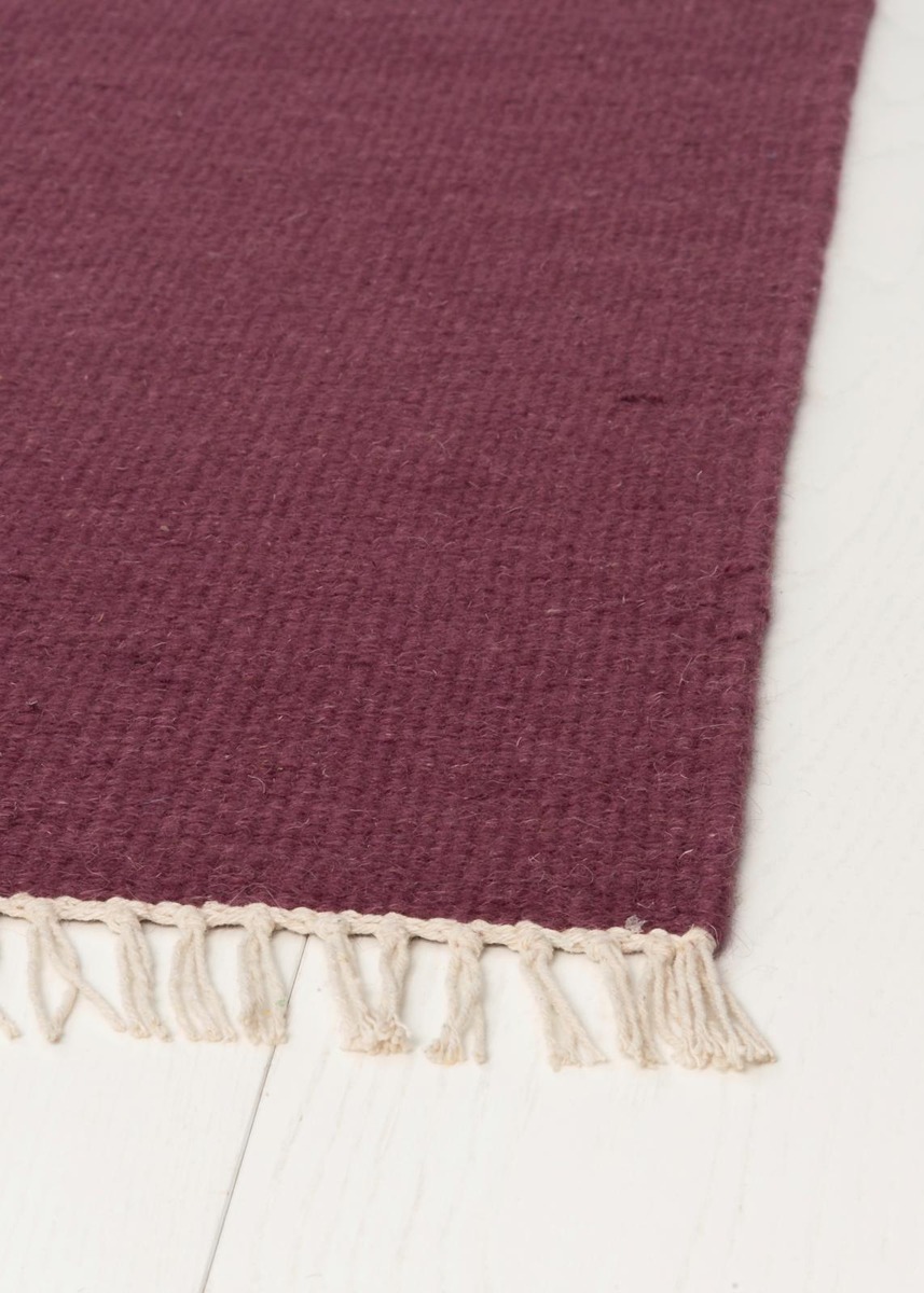 Koko 160x230 cm. Väri viininpunainen. Materiaali villa, loimi puuvilla.