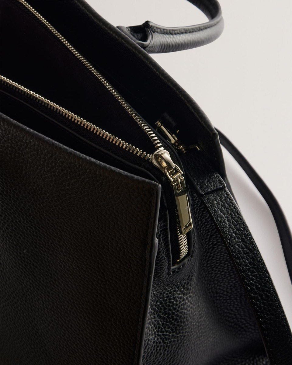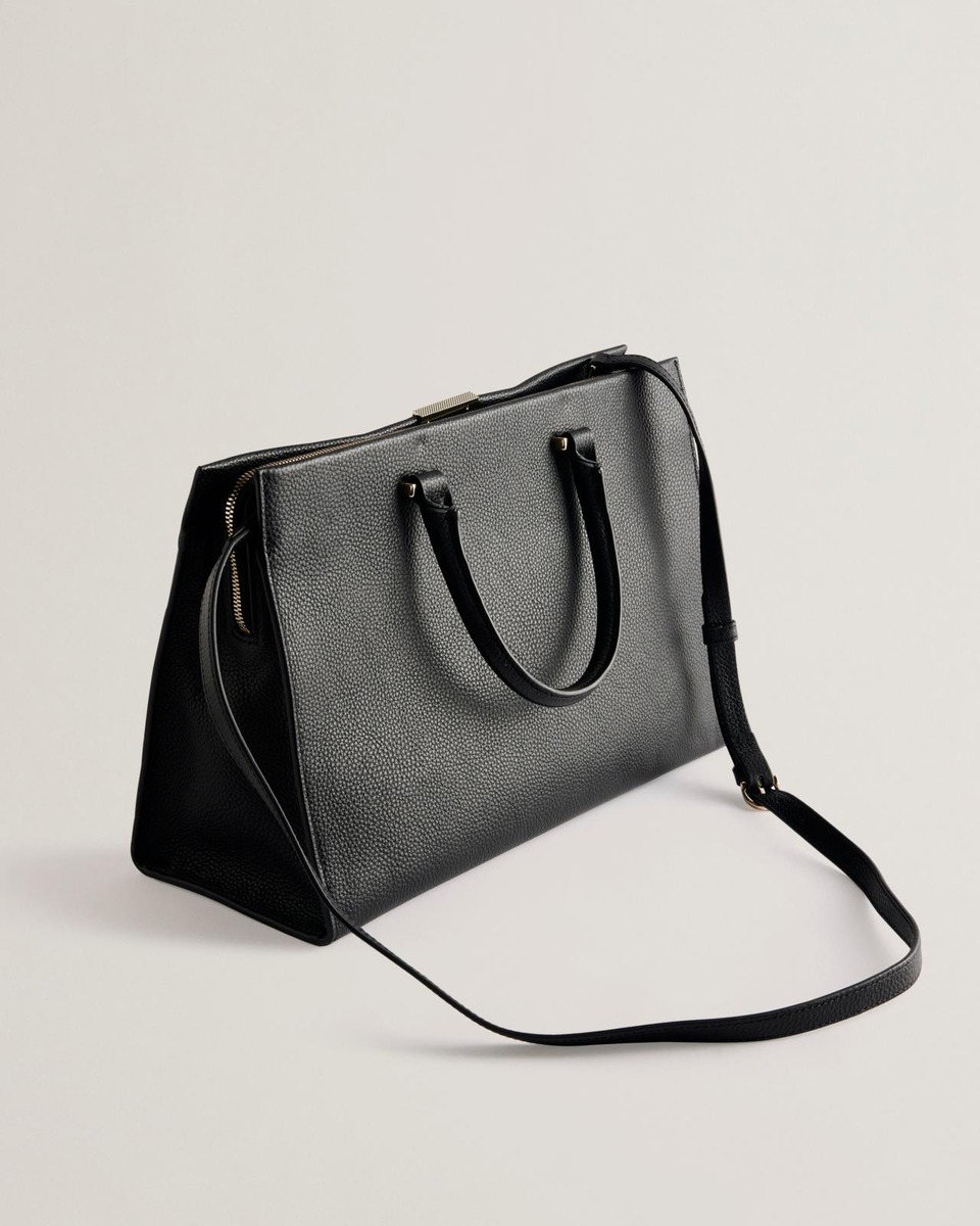 2 lokeroa, keskella iso vetoketjutasku. Toisessa lokerossa vetoketjutasku, toisessa avotasku. Kahvat ja irrotettava säädettävä olkahihna.