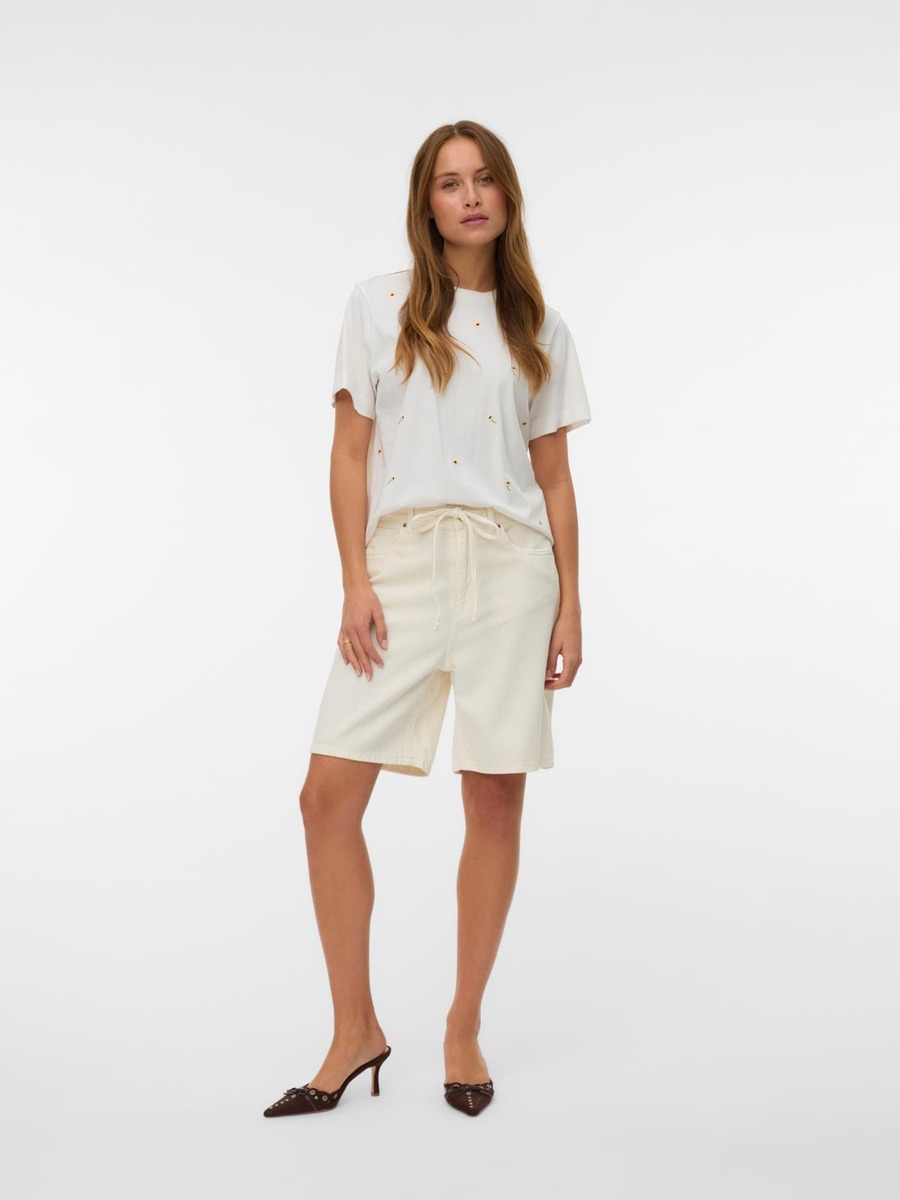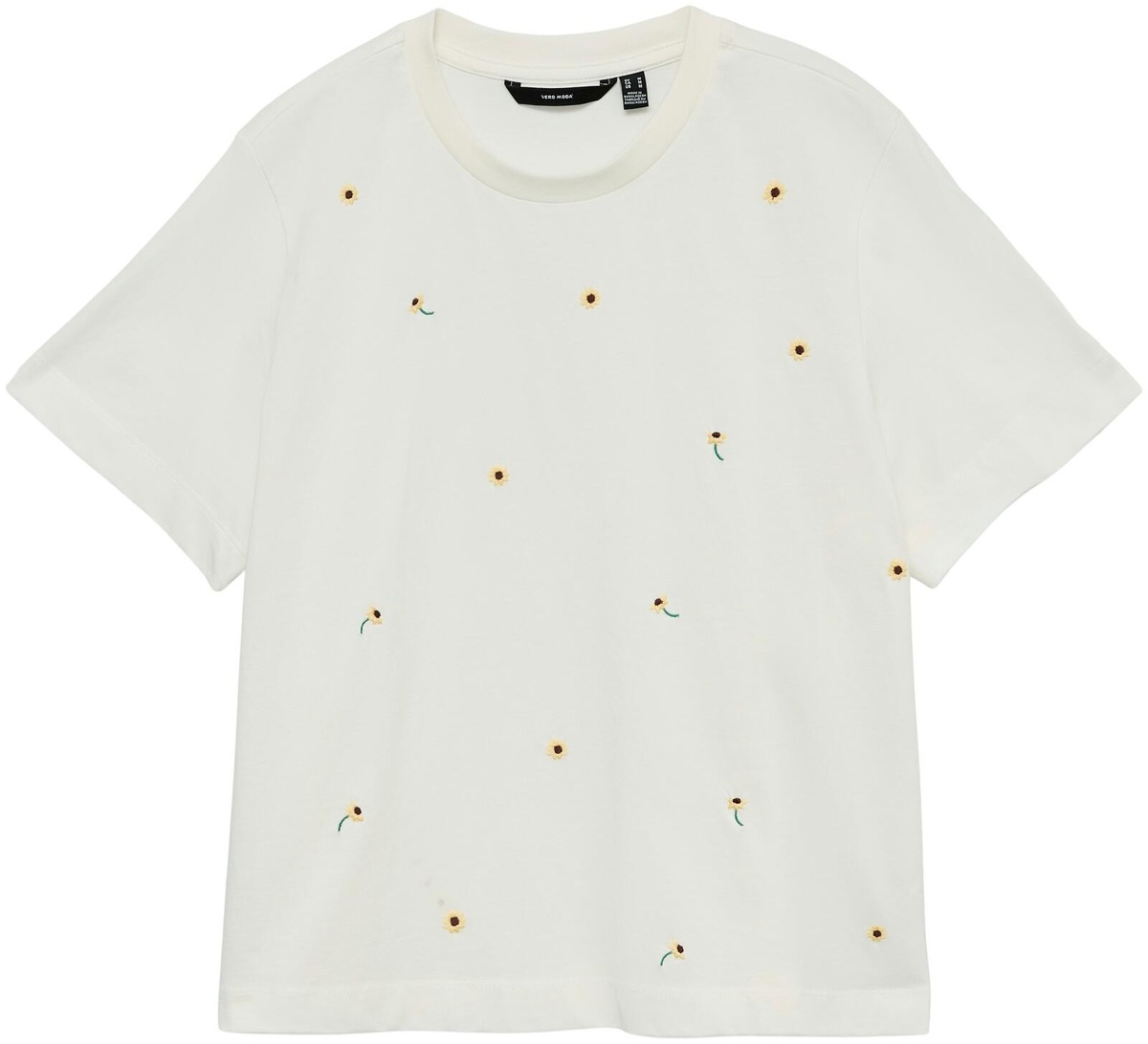 Lyhythihainen t-paita suloisilla kukkabrodeerauksilla. Pyöreä pääntie.