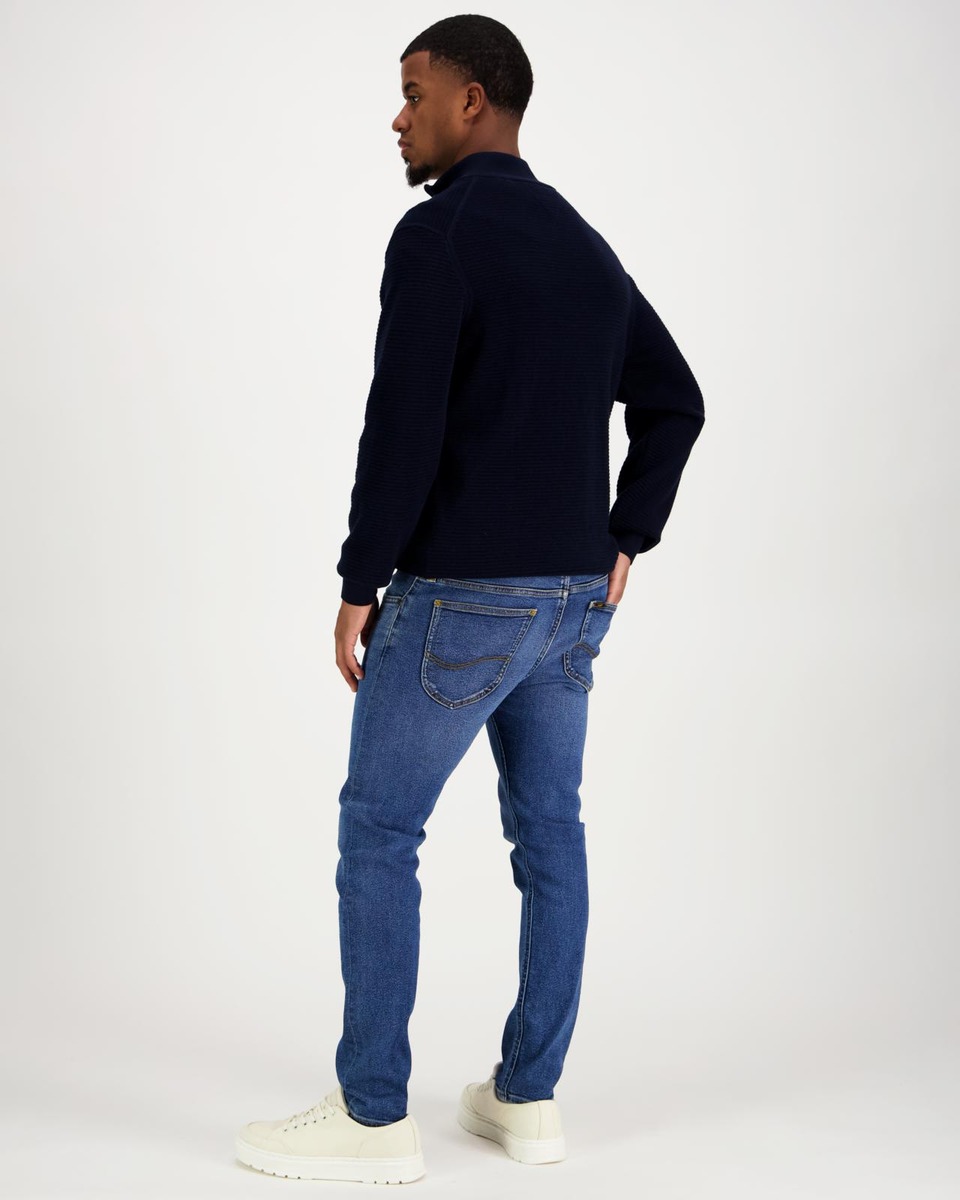 Ajaton tummansininen neule, jossa on moderni puolivetoketju ja huoliteltu istuvuus. Valmistettu pehmeästä ja laadukkaasta materiaalista, joka takaa mukavuuden ja kestävyyden. Sopii täydellisesti kerrospukeutumiseen arkeen ja vapaa-aikaan – klassinen valinta joka tilanteeseen.