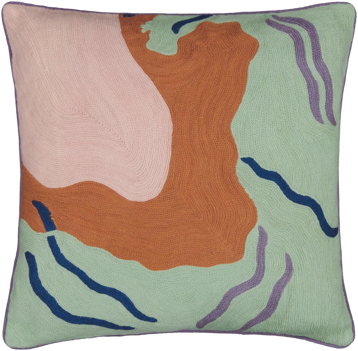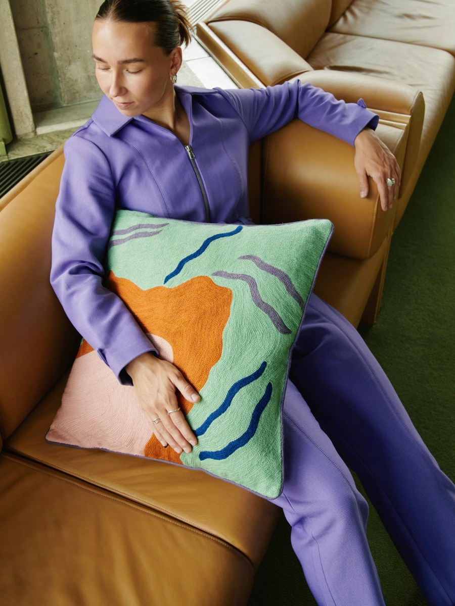 Selene-tyynynpäällinen on tekstiilitaiteilija Eija Rasinmäen suunnittelema. Tyynyn etupuolen kuvio on käsin kirjaitu pehmeästä villasta villakankaalle ja tyynyn takapuoli on puuvillaa. Selene on saanut inspiraationsa Columbus-maton kuviosta, ja sen designissa voi nähdä osan tästä kuviosta. Selene yhdistää mintunvihreään, ruosteenoranssiin ja vaaleanpunaiseen pohjaan sinisiä ja liiloja kuvioita. Värikäs mutta kokonaisilmeeltään rauhallinen Selene on helppo yhdistää muihin yksinkertaisempiin tai kuviollisiin tyynyihin luodaksesi leikkisän kokonaisuuden.