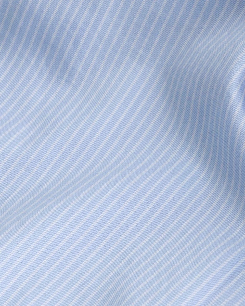 Klassinen ja tyylikäs kauluspaita, joka sopii täydellisesti niin työpäivään kuin juhlavampiin tilaisuuksiin. Vaaleansininen sävy yhdistettynä hienovaraisiin raitoihin luo raikkaan ja elegantin ilmeen. Klassinen kaulus, toimii solmion kanssa tai ilman