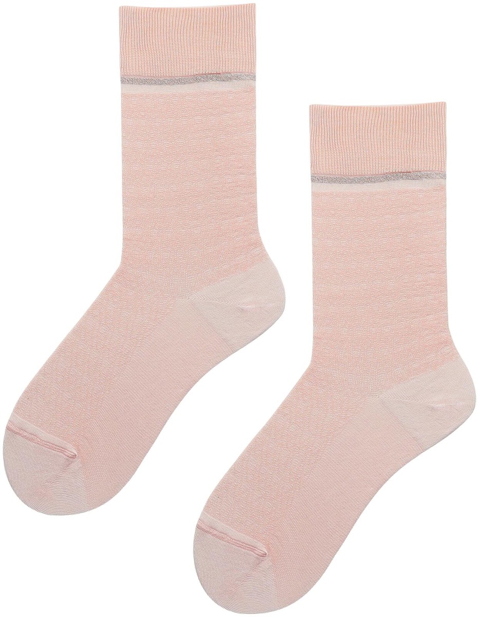 Puuvillasekoitteiset nilkkasukat tyylikkäällä nuolikuvioinnilla. Kaunis hohtava somiste. Sisältävät merssipuuvillaa. Mukava resori.