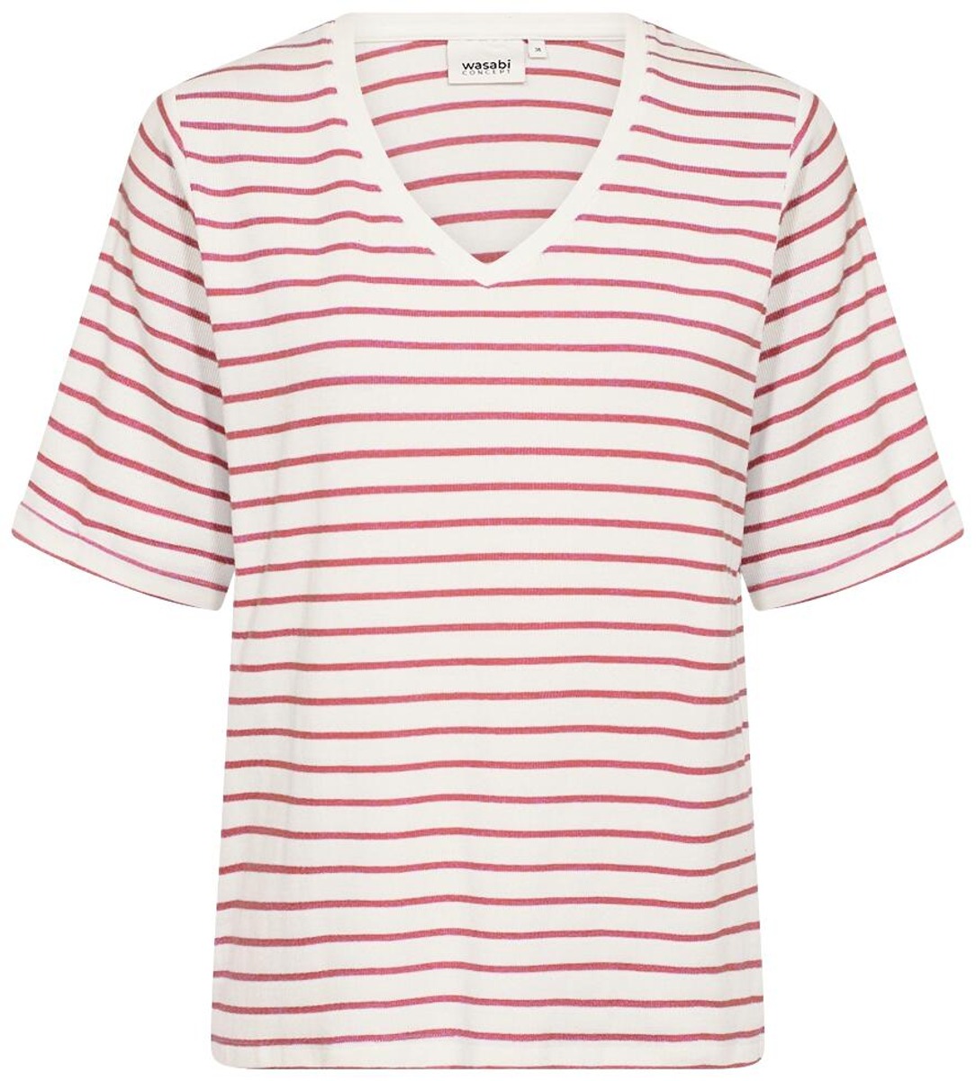 WA-SAKAR 1 on perus-T-paita, joka on valmistettu 65 % kierrätetystä puuvillasta, 30 % LENZING™ ECOVERO™ -viskoosista ja 5 % elastaanista. Paidassa on V-pääntie ja raidallinen kuosi kauttaaltaan. Yhdistä tämä siisti ja persoonallinen T-paita farkkuihin tai shortseihin rennon lookin luomiseksi.