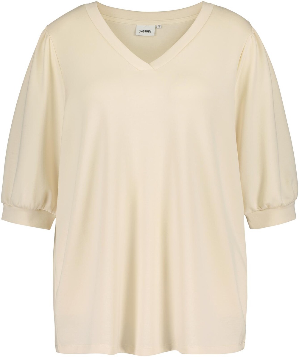 WA-SABINA 8 on naisellinen pusero, joka on valmistettu 48 % modalista, 48 % polyesteristä ja 4 % elastaanista. Puserossa on imartelevan mallinen V-pääntie, puolipitkät hihat kevyellä pussimaisella muotoilulla sekä resorit hihansuissa. Yhdistä siisteihin housuihin saadaksesi elegantin toimistotyylin tai farkkuihin rennompaa lookia varten.
