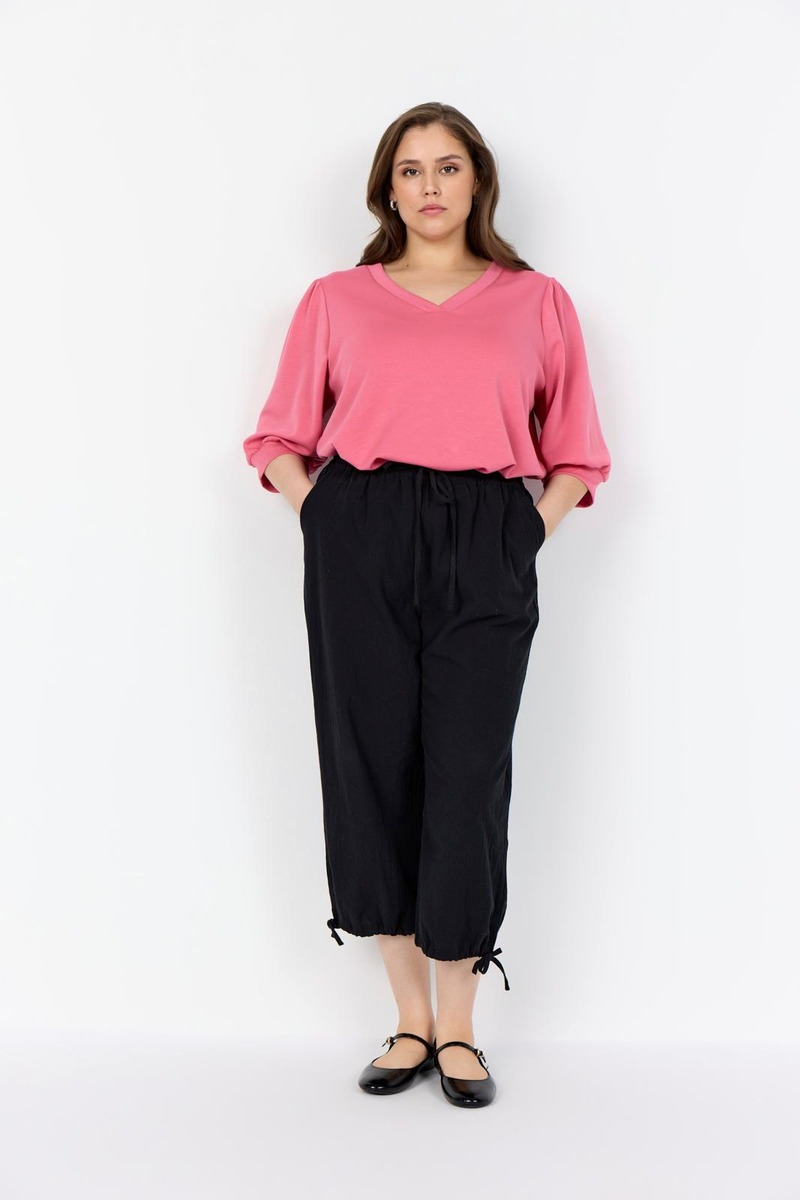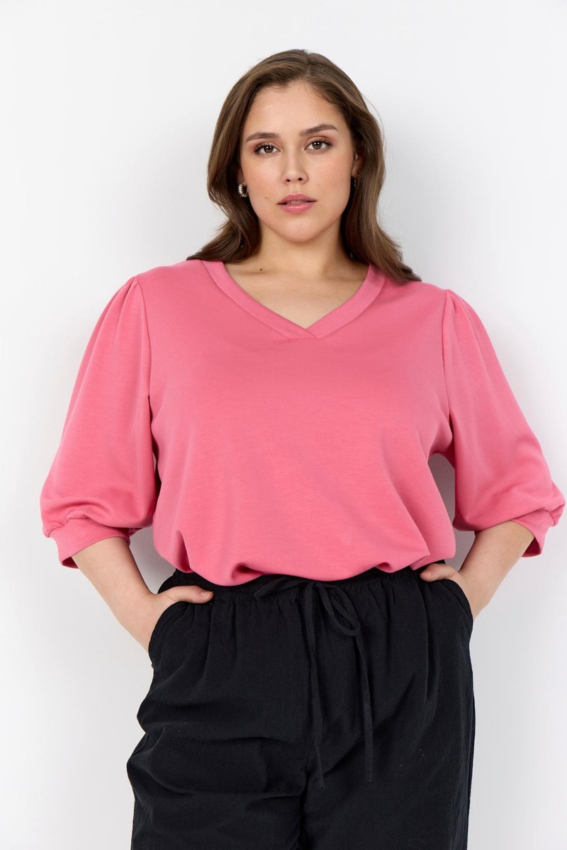 WA-SABINA 8 on naisellinen pusero, joka on valmistettu 48 % modalista, 48 % polyesteristä ja 4 % elastaanista. Puserossa on imartelevan mallinen V-pääntie, puolipitkät hihat kevyellä pussimaisella muotoilulla sekä resorit hihansuissa. Yhdistä siisteihin housuihin saadaksesi elegantin toimistotyylin tai farkkuihin rennompaa lookia varten.