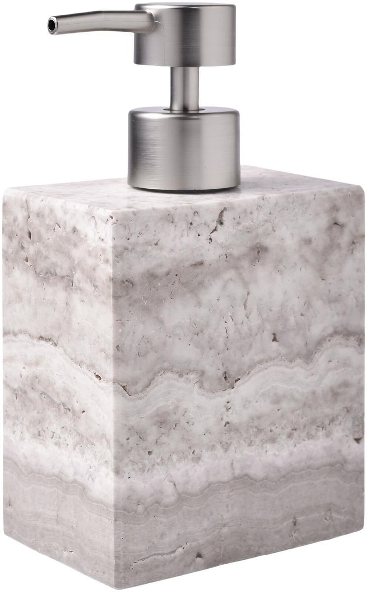 Elegantti saippua-annostelija travertiinimarmorista, luonnollinen elementti sisustuksessa. Saippua-annostelija sopii hyvin yhteen muiden saman marmorisarjan kylpyhuonetarvikkeiden kanssa. Travertiini on luonnonmateriaali, joten siinä voi olla eroja. Mitat: Korkeus: 15,5 cm; Pituus: 9,4 cm; Leveys: 6,2 cm
