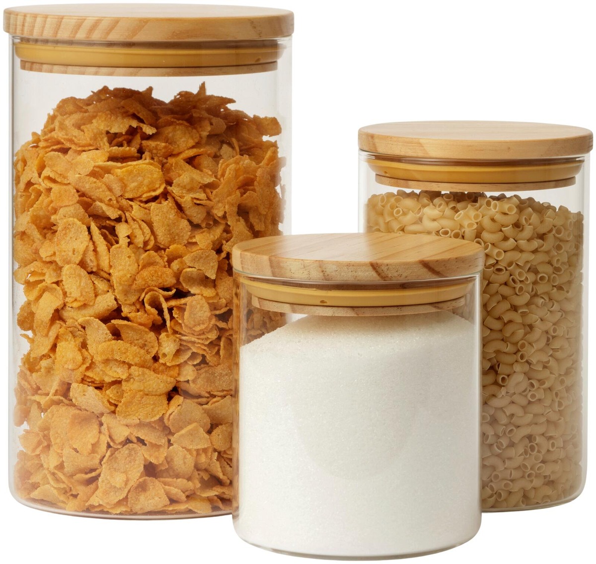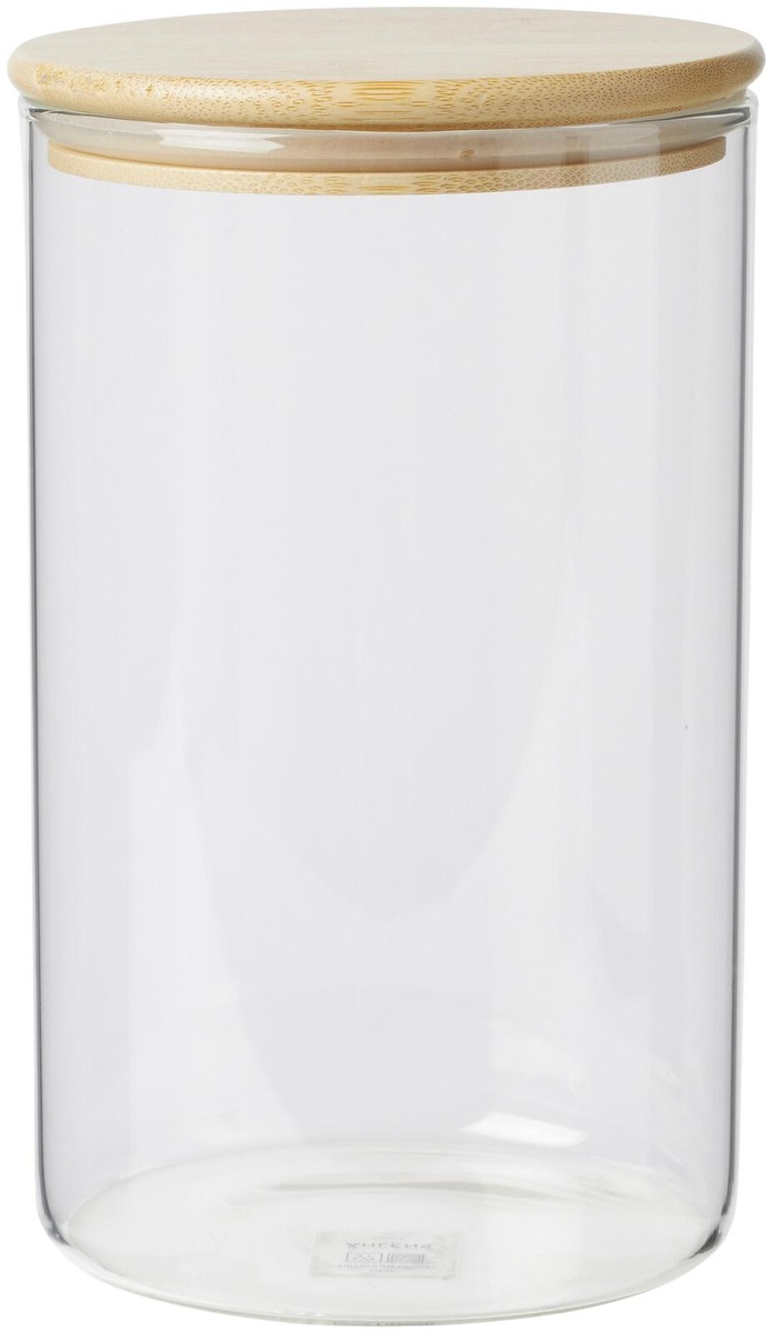 Lasinen säilytyspurkki, jossa on tyylikäs mäntypuinen kansi. Kannessa on silikonireuna, joka sulkeutuu tiiviisti ja pitää kosteuden ulkona. Täydellinen säilytyspurkki muroille, pastalle ja muille ruokakomeron herkuille. Mitat: Korkeus: 19,5 cm, Halkaisija: 12 cm, Tilavuus: 1,8 l