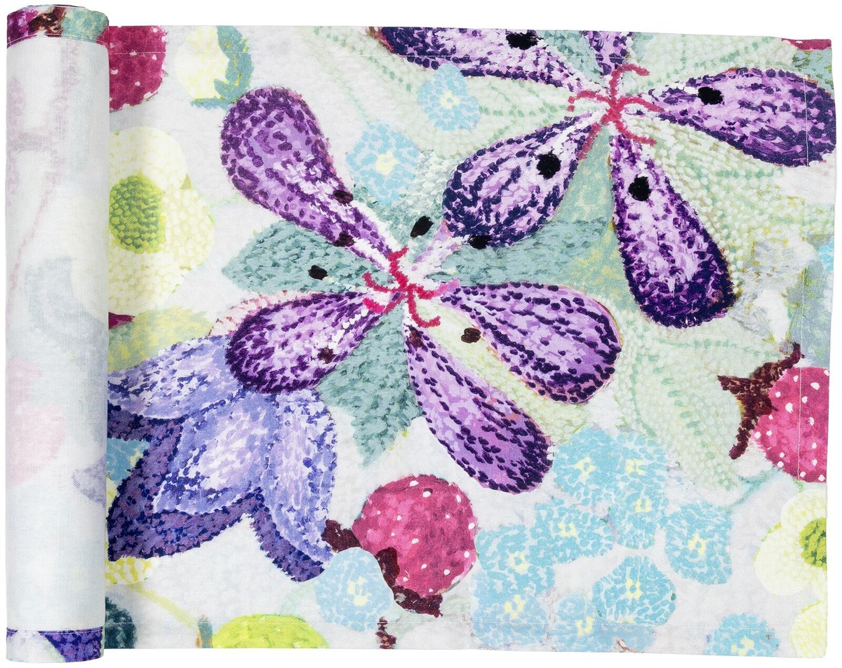 Pohjoisen kesän valo, lämpö ja kaikkialla hehkuvat värit houkuttelevat ulos keräämään muistoja, elämään täysillä ja hetkessä. Lasse Kovasen suunnittelema Kesä-kuosi kuplii ja pirskahtelee. Se on täynnä lapsenomaista iloa ja huolettomuutta. Metsämansikoita, Niittyleinikkejä, Kissankelloja ja Kurjenpolvia villisti sikinsokin aseteltuina. Kuosi on maalattu tempera-tekniikalla pointillistiselle maalaustavalle ominaiseen pistemäiseen tyyliin. Leikkisä ja runsas kesäinen kuosi on saatavilla kattaus- ja keittiötekstiilien, tyynynpäällisen ja kankaiden muodossa. Kesä-malliston värikäs kaitaliina on kooltaan 43x160 cm ja sen materiaali on 100 % puuvillaa.